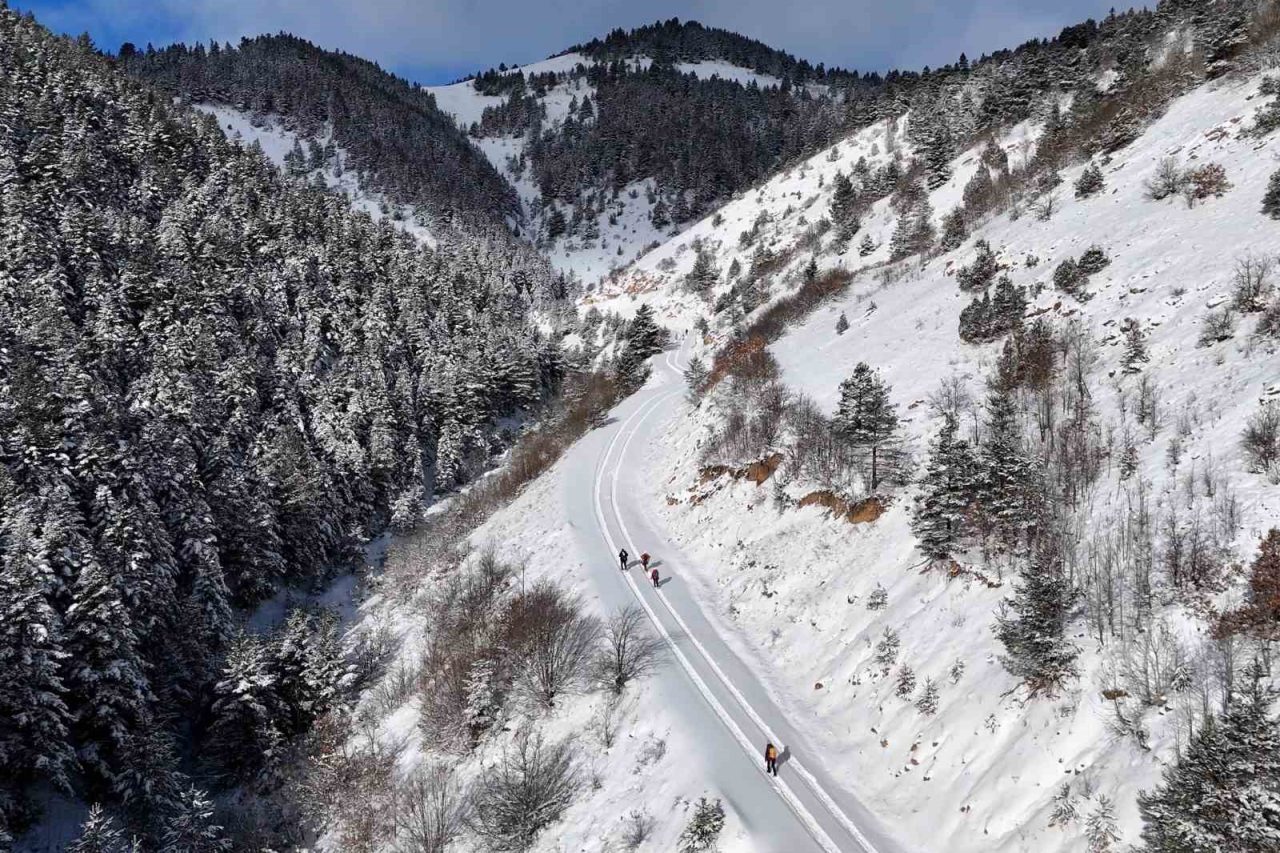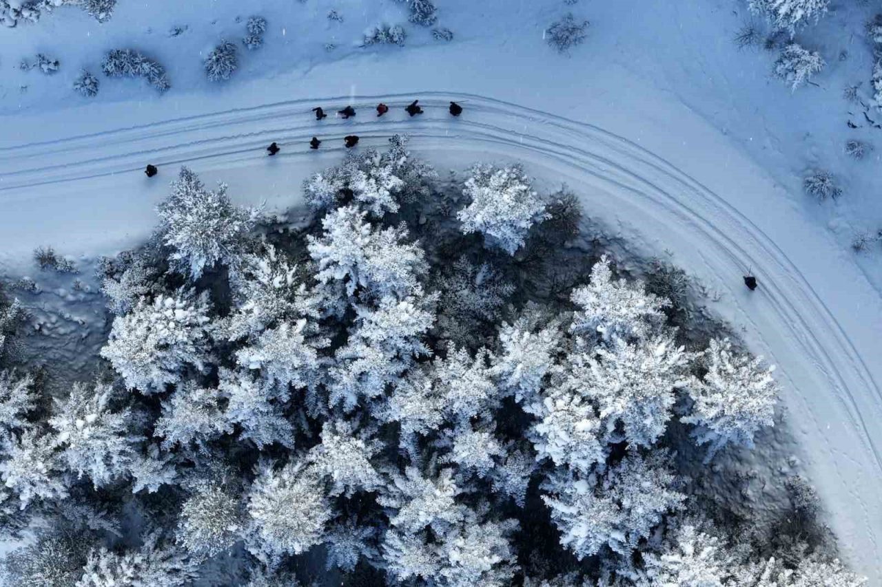 Karla kaplı çam ve göknar ormanları arasında unutulmaz bir gün geçiren sporcular yürüyüş boyunca yer yer 40 santimetreye ulaşan taze kar kütlesinin üzerinde yürüdü.