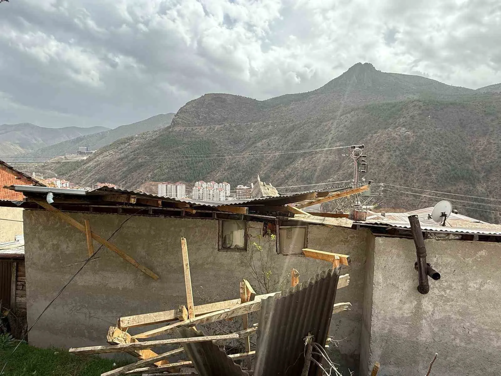 GÜMÜŞHANE’DE DÜN ETKİSİNİ GÖSTEREN ŞİDDETLİ FIRTINA SEBEBİYLE İL VE İLÇE MERKEZLERİNDE TOPLAMDA 20 EVİN ÇATISI UÇTU.