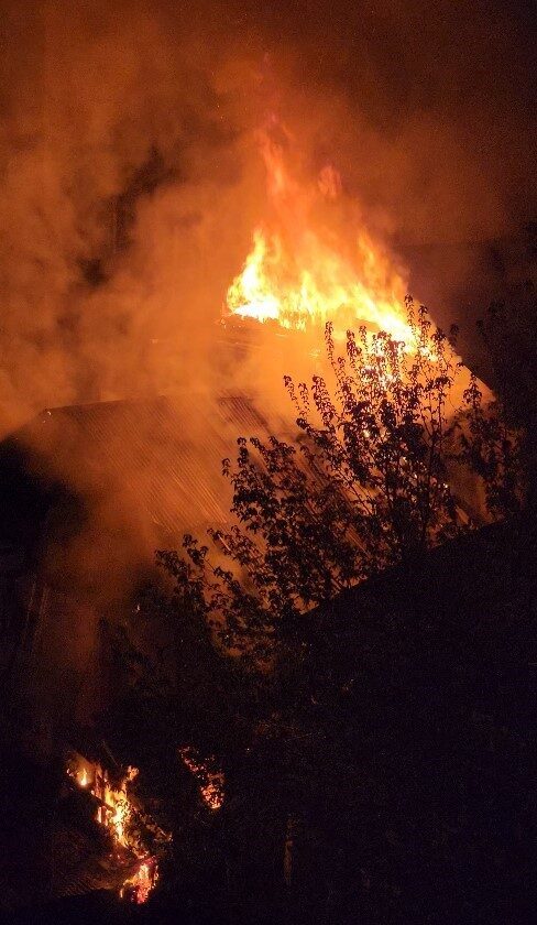 GÜMÜŞHANE’DE GECE SAATLERİNDE MÜSTAKİL BİR EVDE ÇIKAN YANGIN BİTİŞİKTEKİ BAŞKA BİR EVE DAHA SIÇRARKEN MAHALLE SAKİNLERİ BÜYÜK KORKU YAŞADI.