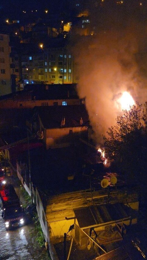 Gümüşhane’de gece saatlerinde müstakil bir evde çıkan yangın bitişiğindeki başka bir eve daha sıçradı.