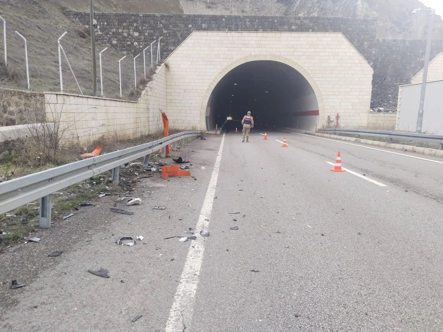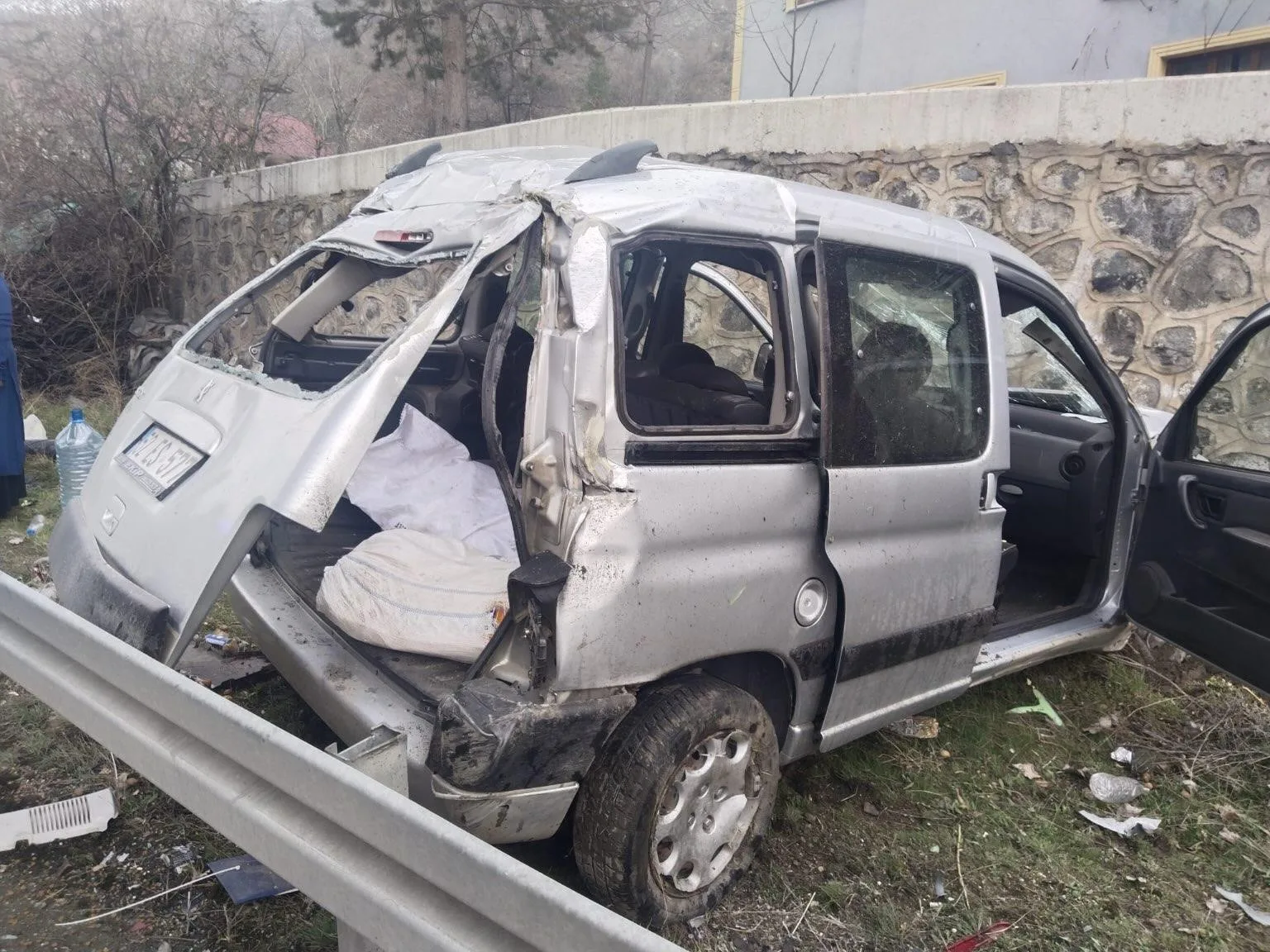 GÜMÜŞHANE’DE SÜRÜCÜSÜNÜN DİREKSİYON HAKİMİYETİNİ KAYBETTİĞİ TİCARİ ARAÇ BARİYERLERE ÇARPARAK TAKLA ATTI, KAZADA 4 KİŞİ YARALANDI.