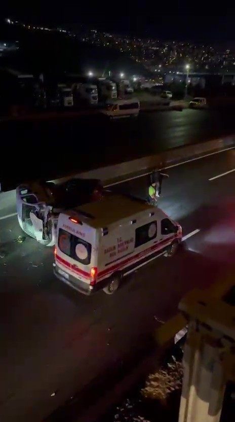 KOCAELİ D100 KARAYOLU’NDA LASTİĞİ PATLAYARAK YOLDA DURAN OTOMOBİLE HAFİF TİCARİ ARAÇ ÇARPTI. ÇARPMANIN ŞİDDETİYLE HAFİF TİCARİ ARAÇ YAN YATARKEN, 2 ÇOCUK YARALANDI.