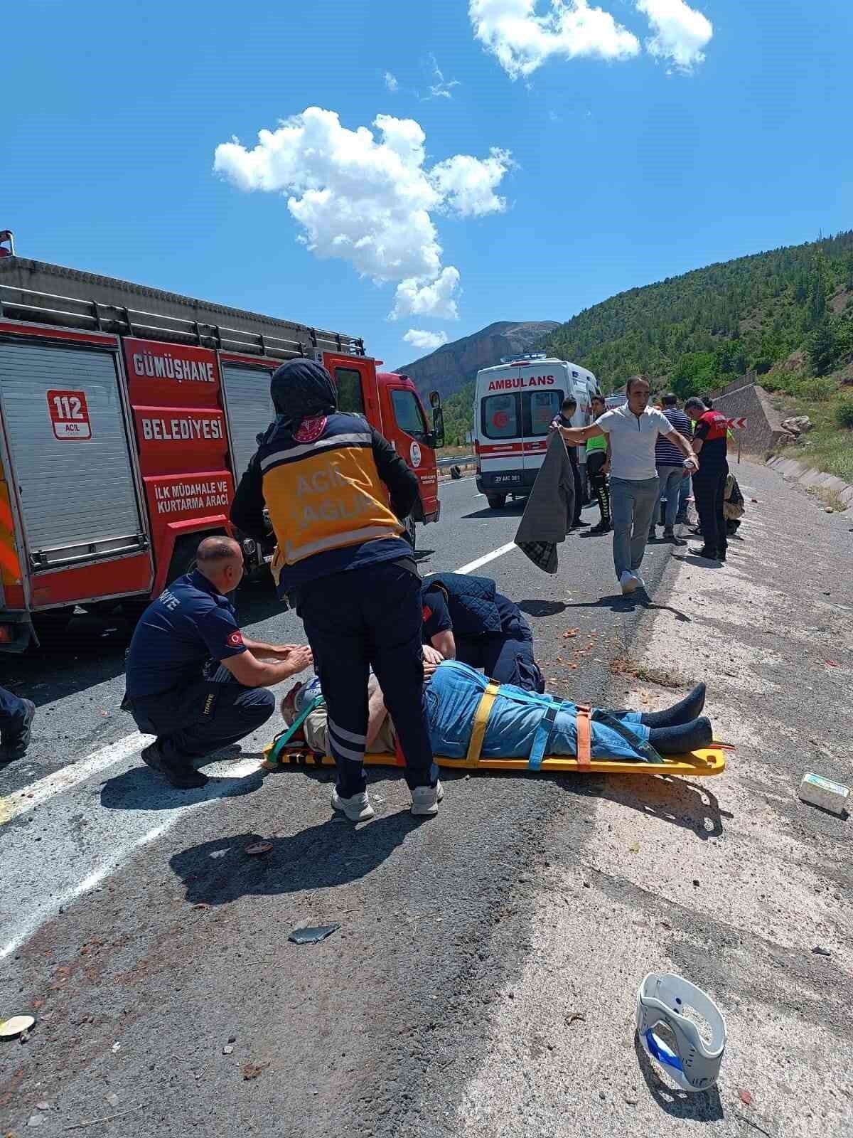 Kazada sürücü Dursun K. ile birlikte araçta bulunan babası Mevlüt K. (88) ve annesi Lehviye K. (86) yaralandı. Olay yerine sağlık ekiplerinin yanı sıra polis, AFAD ve itfaiye ekipleri de sevk edildi. Yaralılar, olay yerinde yapılan ilk müdahalenin ardından Gümüşhane Devlet Hastanesi’ne kaldırıldı. Yaralıların hayati tehlikesinin bulunmadığı öğrenildi.