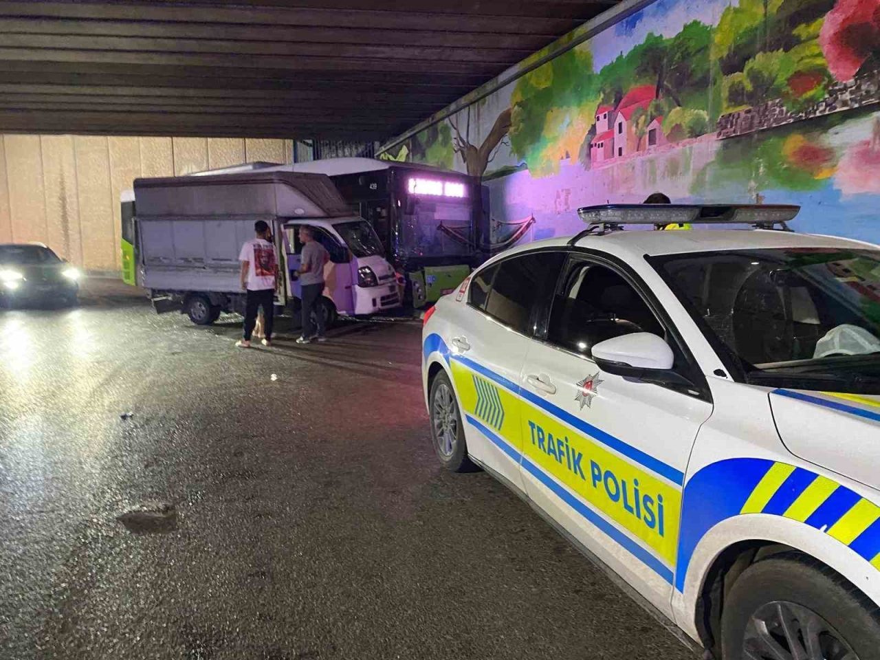 Kaza, Kirazlıyalı mevkiinde bulunan alt geçitte meydana geldi. Edinilen bilgilere göre, servis dışı olan 41 BR 439 plakalı halk otobüsü ile 34 BHC 950 plakalı pazarcı kamyoneti çarpıştı. Kazayı gören vatandaşlar 112 Acil Çağrı Merkezi’ne haber verdi. İhbar üzerine olay yerine sağlık ve polis ekipleri sevk edildi. Kısa sürede olay yerine gelen sağlık ekipleri, yaralan 2 kişiyi ambulansla hastaneye kaldırdı. Kaza sebebiyle araçlarda maddi hasar oluştu.