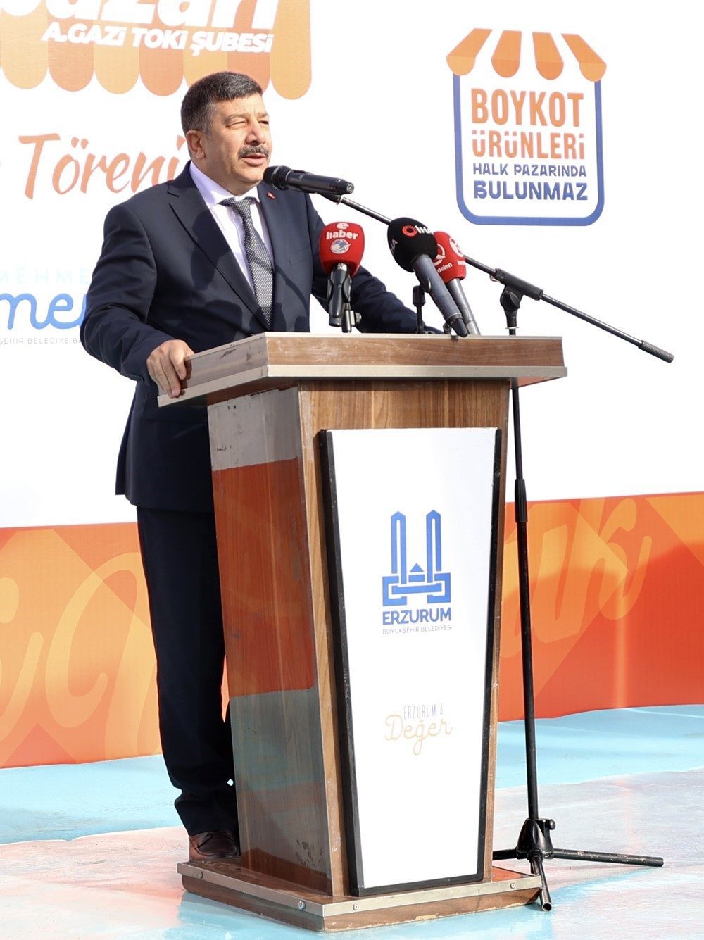 Erzurum Büyükşehir Belediye Başkanı Mehmet Sekmen de, “Belediyecilik, vatandaşın yükünü hafifletmektir. Sofrasına da destek olmaktır. Bugün gördüğünüz bu modern, düzenli, güvenli pazar yeri; hem vatandaşımızın hem esnafımızın hem de üreticimizin yüzünü güldürecek” diye konuştu. “Biz biliyoruz ki bir şehrin bereketi pazardan başlar. Esnafın duasıyla bereket bulur. Vatandaşın memnuniyetiyle güçlenir. Pazar, sadece alışverişin yapıldığı yer değildir; aynı zamanda mahalle kültürünün yaşadığı, insanların selamlaştığı, sohbet ettiği, kardeşlik bağlarının tazelendiği bir mekândır. O nedenle halk pazarlarımız bizim için çok önemli” diyen Başkan Sekmen, şöyle devam etti: “Bizim bütün çalışmalarımızın temelinde şu anlayış vardır: