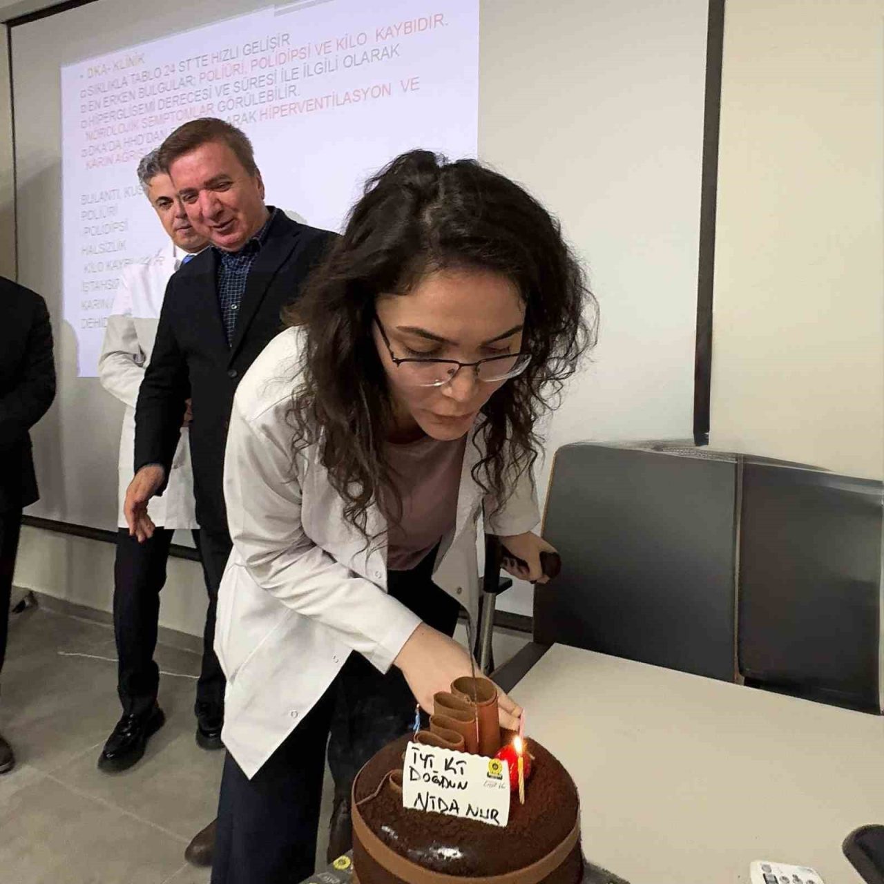 Vali Hamza Aydoğdu, Erzincan Binali Yıldırım Üniversitesi (EBYÜ) Tıp Fakültesi son sınıf öğrencisi Nida Nur Nergiz’i sınıfında ziyaret ederek, doğum gününü kutladı. Vali Aydoğdu, Mersin Üniversitesi Tıp Fakültesi öğrencisi iken 2023 yılında Mersin’de yaşadığı elim bir olay sonucu ayaklarından yaralanan ve tedavisinin ardından eğitimine EBYÜ Tıp Fakültesinde devam eden Nida Nur Nergiz’e hitaben kaleme aldığı mektubu da takdim etti. Vali Aydoğdu, genç doktor adayına hitaben kaleme aldığı mektupta yaşadığı zorluklara rağmen dimdik ayakta durmasının bütün kız çocukları için umut olduğunu vurguladı. Vali Aydoğdu, mektubunda ayrıca hangi imtihanla karşılaşılırsa karşılaşılsın yeniden ayağa kalkabilmenin hayat yolculuğunun en kıymetli erdemlerinden biri olduğuna dikkat çekti.