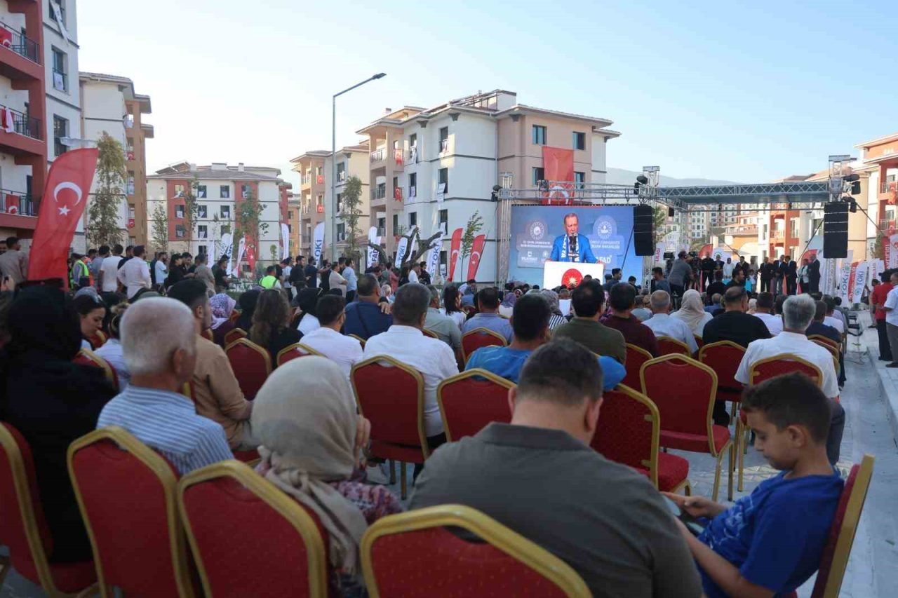 Cumhurbaşkanı Recep Tayyip Erdoğan’ın Malatya’dan video konferans yoluyla katıldığı törende Hatay’da 18 bin 348 bağımsız bölümün hak sahipleri belirlendi. Yuvalarının anahtarlarını teslim alan aileler, Cumhurbaşkanı Erdoğan başta olmak üzere emeği geçenlere teşekkürlerini dile getirdi.
