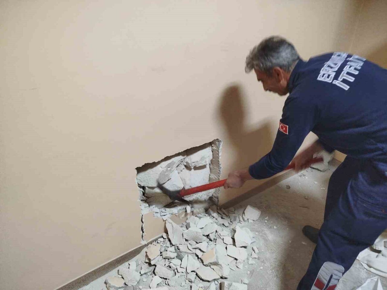 Erzincan’da havalandırma boşluğunda sıkışan kedi itfaiye ekiplerince kurtarıldı.