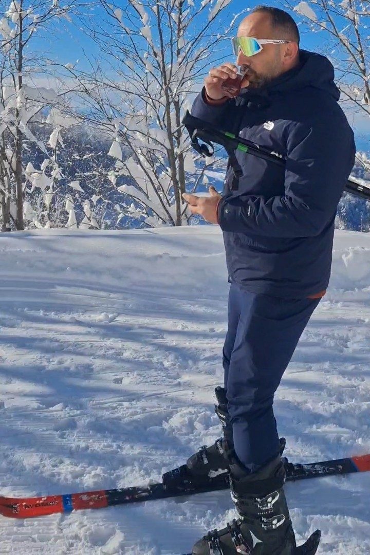 Rize’de kar yağışı ile birlikte ilginç kar eğlenceleri de başladı. Rize’nin Kış Spor Merkezi olan denizi gören yaylası Handüzü’nde oluşturulan kayak pistinde kayak yapan vatandaşlar eğlencenin tadını çıkarmaya devam ediyor. Bölgeye kayak yapmak için çıkan Ersin Kalender de karın tadını çıkartanlardan bir tanesi oldu. Kayakla karın tadını çıkartan Kalender, bir taraftan da çay içerek manzaranın tadını çıkardı. Elinde çay bardağı ile kayan Kalender’in o anları ise ilgi çekti.