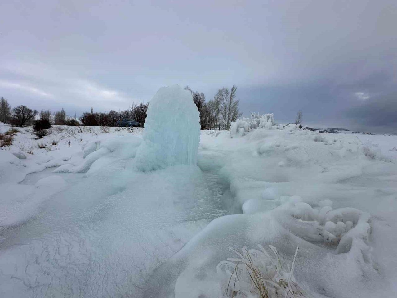 Yetkililerden alınan bilgilere göre, buz kütlesinin yer altı sularının yüzeye çıkıp aşırı soğuk hava nedeniyle donması sonucu oluştuğu belirtildi. Bölgedeki sert kış şartlarının nadir görülen bu tür doğa olaylarını ortaya çıkardığı ifade edildi.
