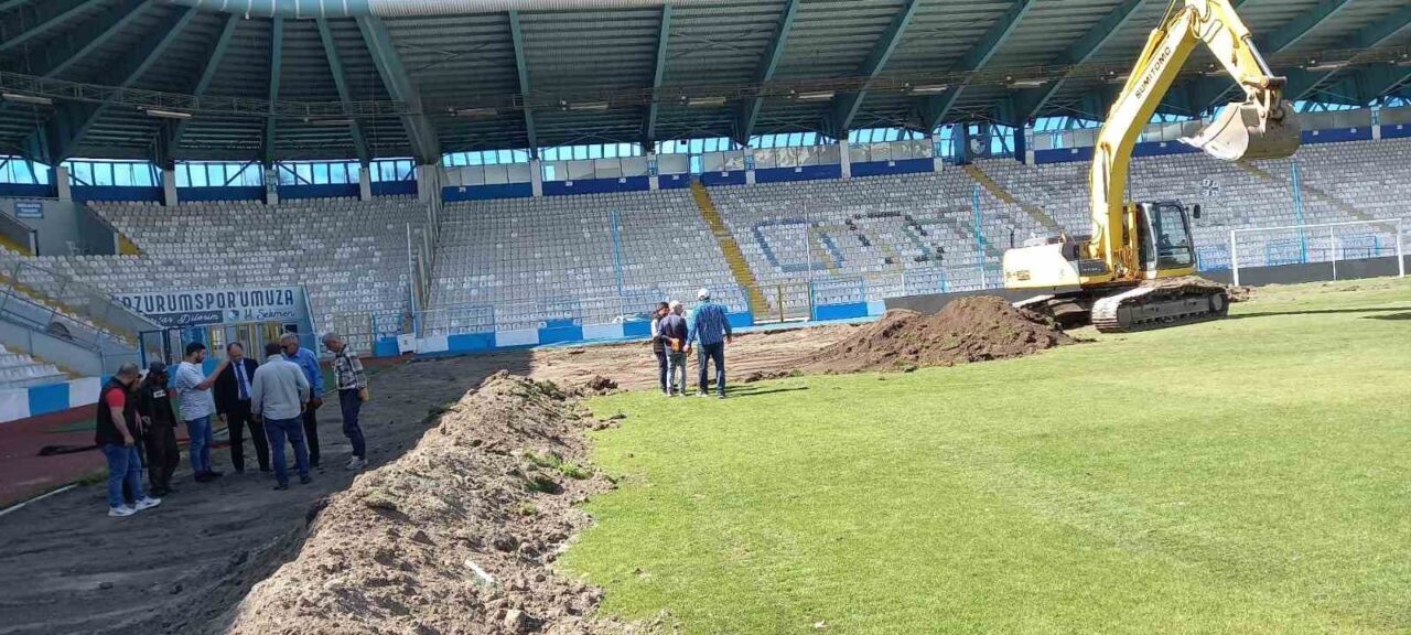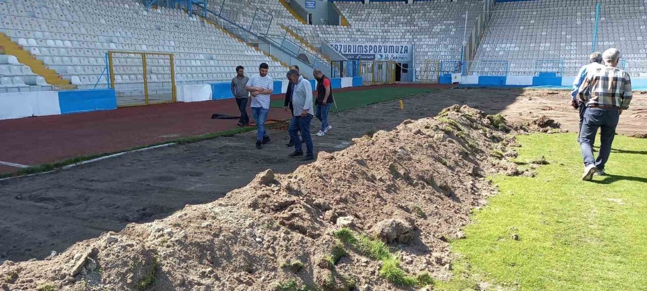 Yeni stadyum yapılıncaya kadar Erzurumspor’un maçlarını oynayacağı Kazım Karabekir Stadının zeminin hibrit çime dönüştürülmesi için kazma vuruldu ve iş makineleri stada girdi.