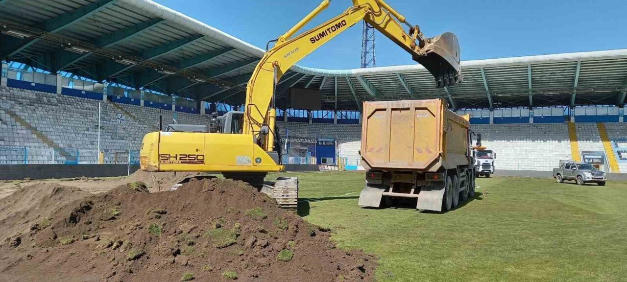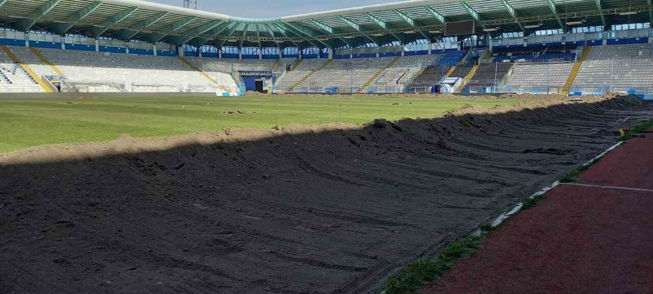 Erzurum Kazım Karabekir Stadı zemininde hibrit çim çalışmaları başladı.