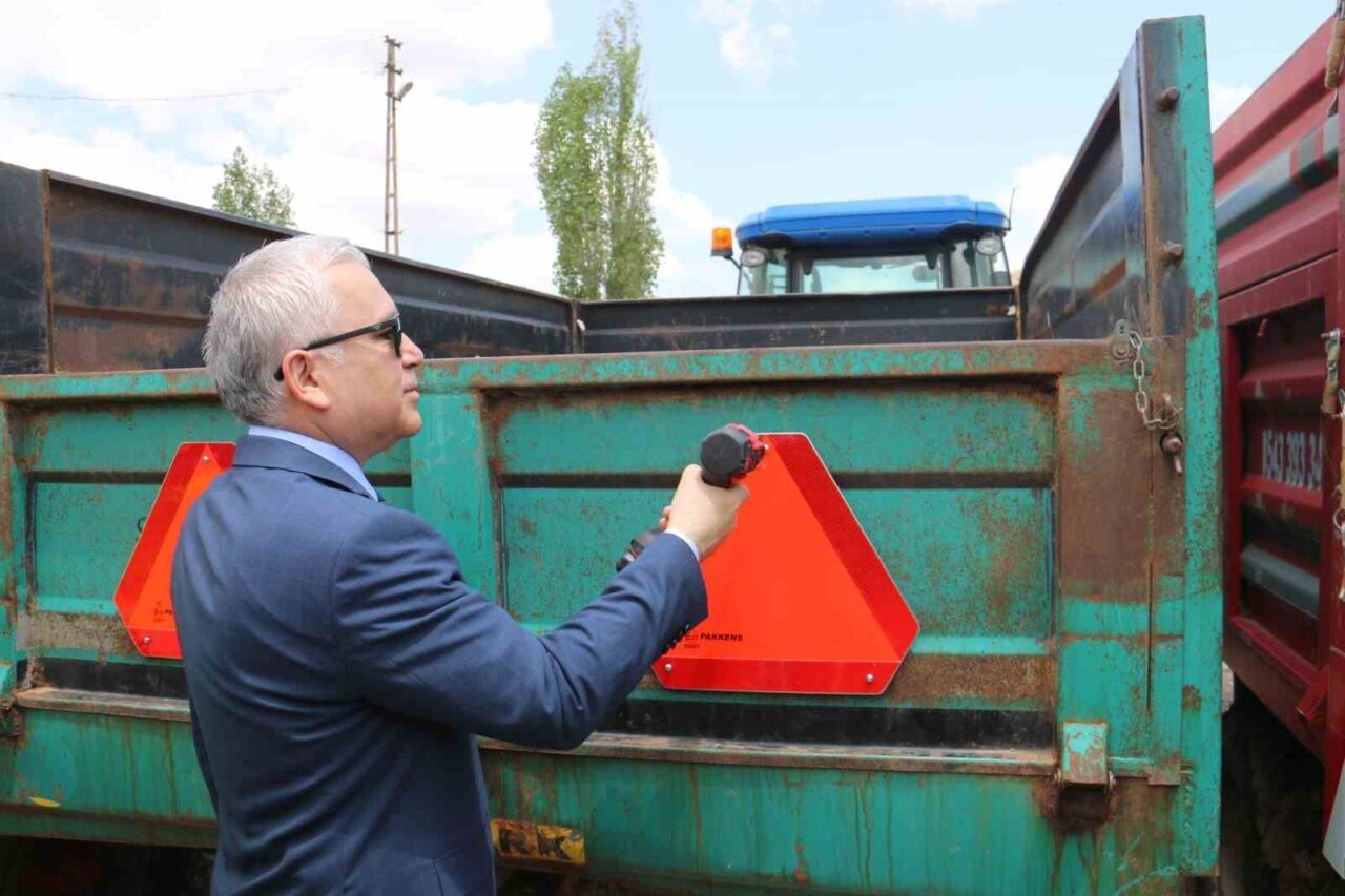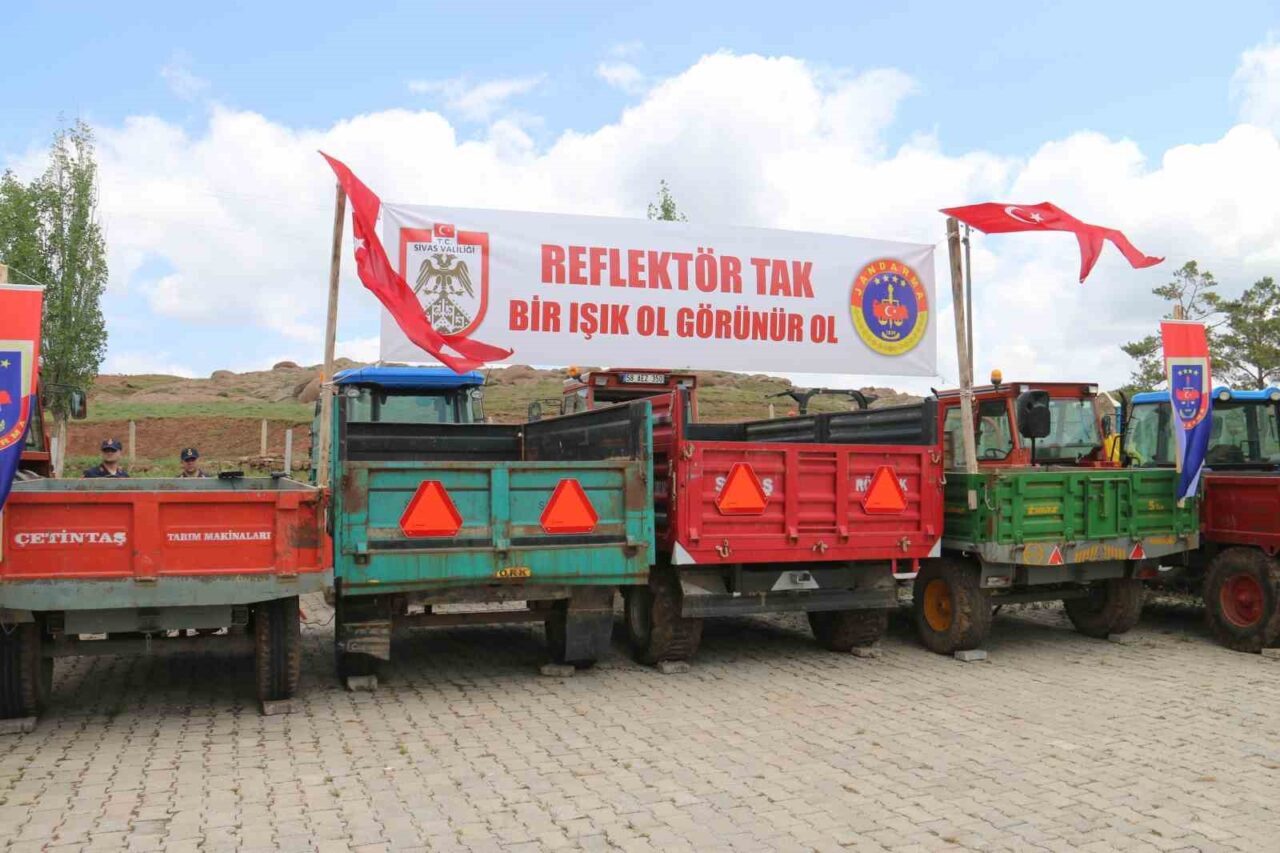 Yaz aylarının gelmesiyle birlikte traktör kullanımının arttığı Sivas’ta kazalar da beraberinde arttı. Son bir haftada traktör kazaları nedeniyle 3 kişinin hayatını kaybettiği kentte İl Jandarma Komutanlığı örnek bir projeye imza attı. ‘Reflektör tak, bir ışık ol, görünür ol’ sloganıyla başlatılan proje çerçevesinde kırsalda yaşayan çiftçilere reflektör dağıtımı yapıldı. Kent merkezine 30 kilometre mesafede bulunan Karayün köyünde yapılan reflektör dağıtım törenine Sivas Valisi Yılmaz Şimşek, İl Jandarma Komutanı Albay Adem Taşkın, İl Emniyet Müdürü Burhan Akçay, kurum müdürleri, STK temsilcileri ve köylüler katıldı.