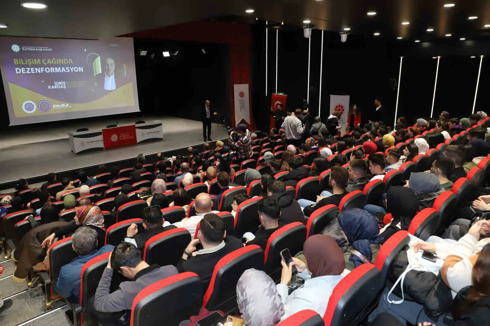 CUMHURBAŞKANLIĞI İLETİŞİM BAŞKANLIĞI DEZENFORMASYONLA MÜCADELE MERKEZİ KOORDİNATÖRÜ İDRİS KARDAŞ’IN KONUŞMACI OLARAK KATILDIĞI “BİLİŞİM ÇAĞINDA DEZENFORMASYON” KONULU SÖYLEŞİ, İLETİŞİM FAKÜLTESİ KONFERANS SALONUNDA GERÇEKLEŞTİRİLDİ.