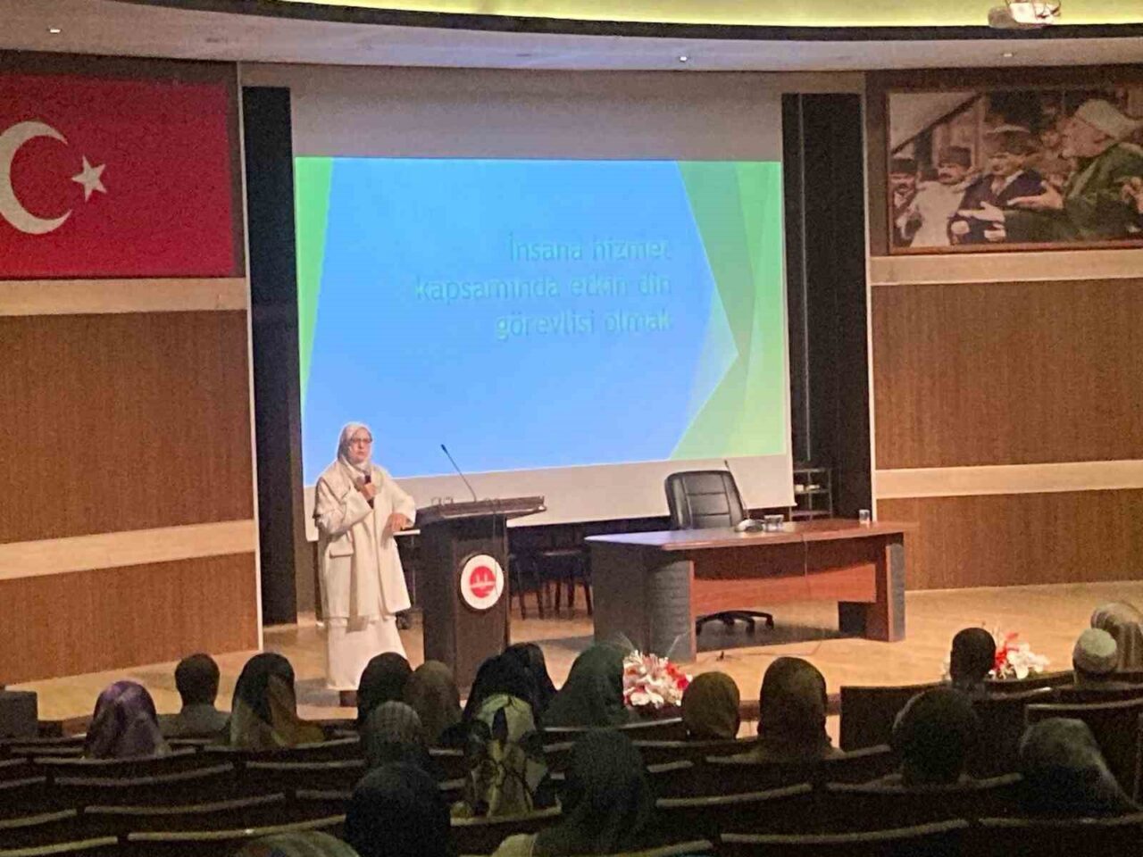 Hacı Salih Efendi Cami Müezzin Kayyım’ı Sakıp Kındığılı’nın yaptığı Kur’an-ı Kerim tilaveti ile başlayan programda; Müftü Yardımcısı İsmail Yılmaz’ın yaptığı selamlama konuşmasının ardından kürsüye davet edilen Uzman Dr. Semin Güler Oğurtan, yaptığı konuşmada; din görevlisinin özellikle aile kavramı üzerinde oynadığı etkin role dikkat çekerek, yaşadığı ilginç hatıralardan anektodlar aktardı.