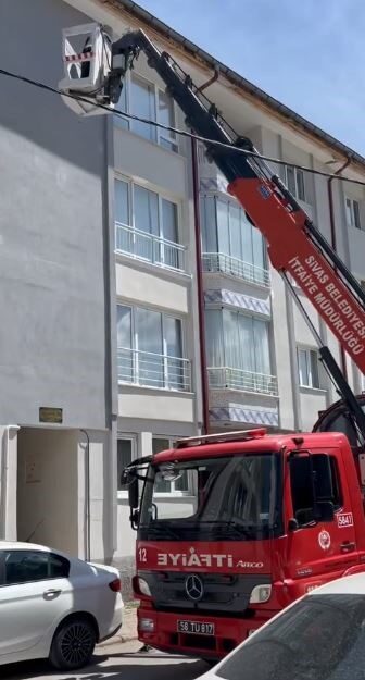 Sivas’ta bir apartmanın çatısından sarkan ipe kuş takıldı. Kuşun çırpınışını gören vatandaşlar, durumu itfaiye ekiplerine bildirdi. Apartmana gelen itfaiye ekipleri, merdivenli itfaiye aracı ile kuşa uzandı. Kuşu mahsur kaldığı yerden uzun uğraşlar sonucu kurtaran itfaiye personeli, kurtardığı kuşu doğal yaşam alanın bıraktı. O anlar çevrede bulunan bir vatandaşın cep telefonu kamerasına yansıdı.