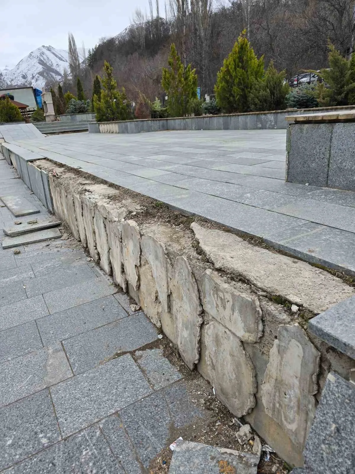 Erzurum’un İspir ilçesinde hükümet konağı önündeki meydan adeta harabeye döndü.