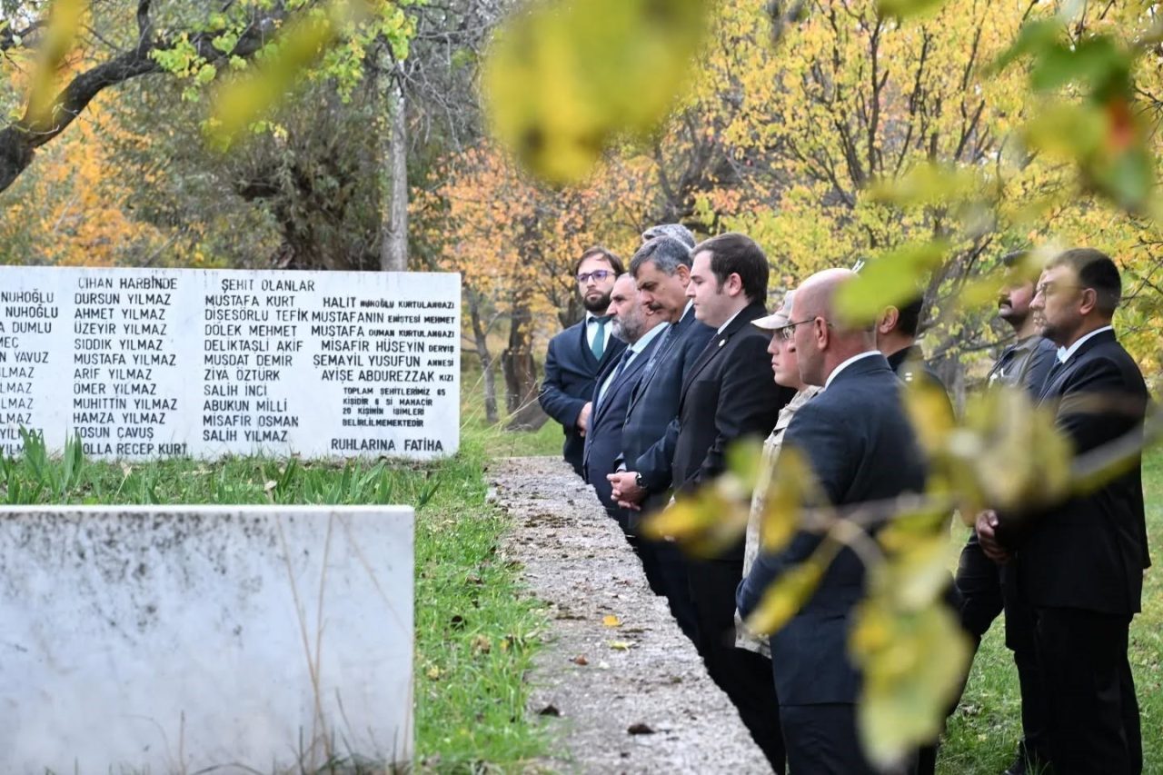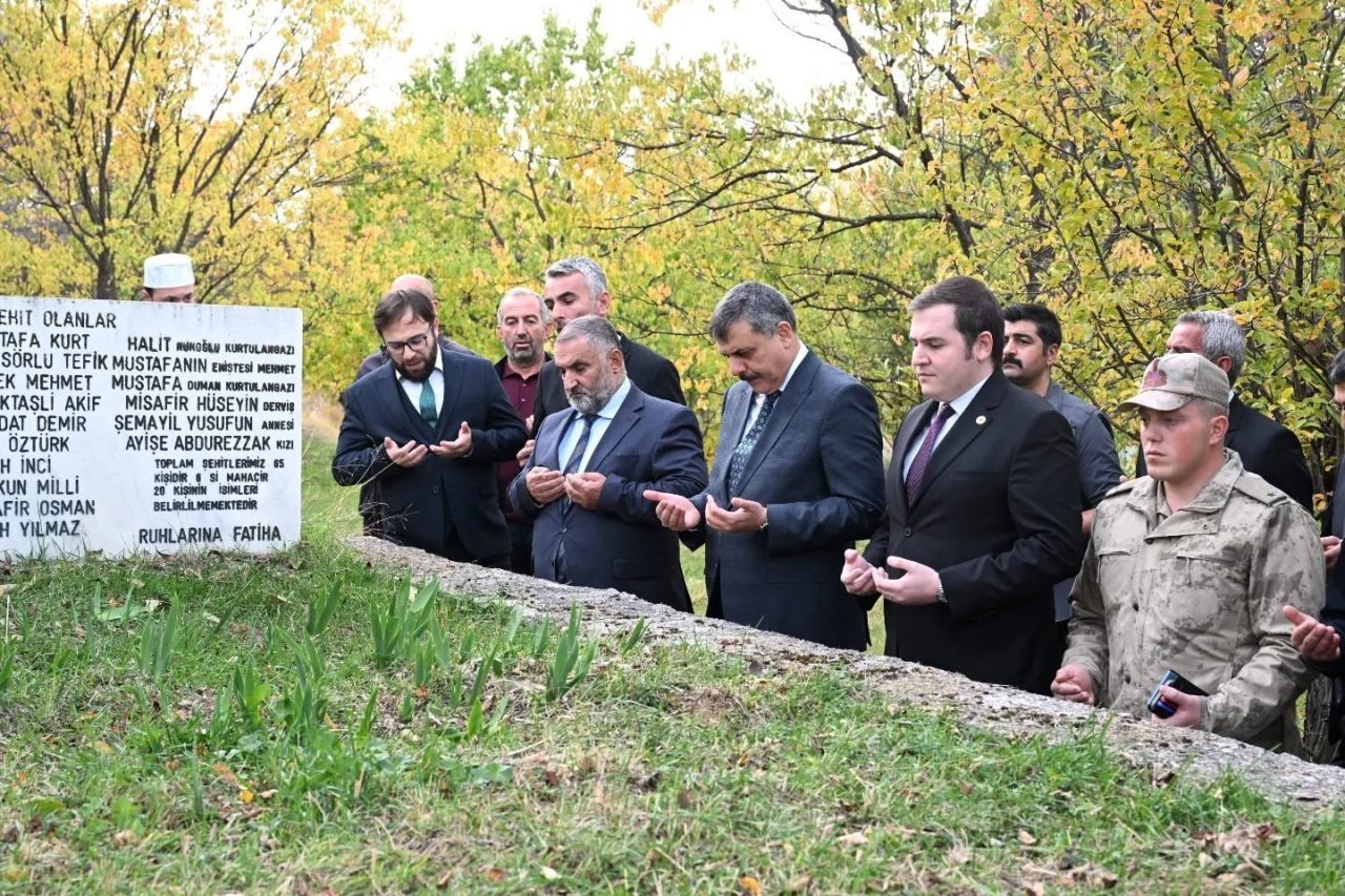 Vali Mustafa Çiftçi, gezi programı içerisinde Pazaryolu Kaymakamı Fikri Badioğlu’na hayırlı olsun ziyaretinde bulundu. Pazaryolu İlçesinde bulunan Cihan Harbi Şehitliğine bir ziyaret gerçekleştiren Vali Çiftçi ve beraberindeki heyet, Ermeni çeteleri tarafından katledilen 65 şehidin kabri başında dua etti.