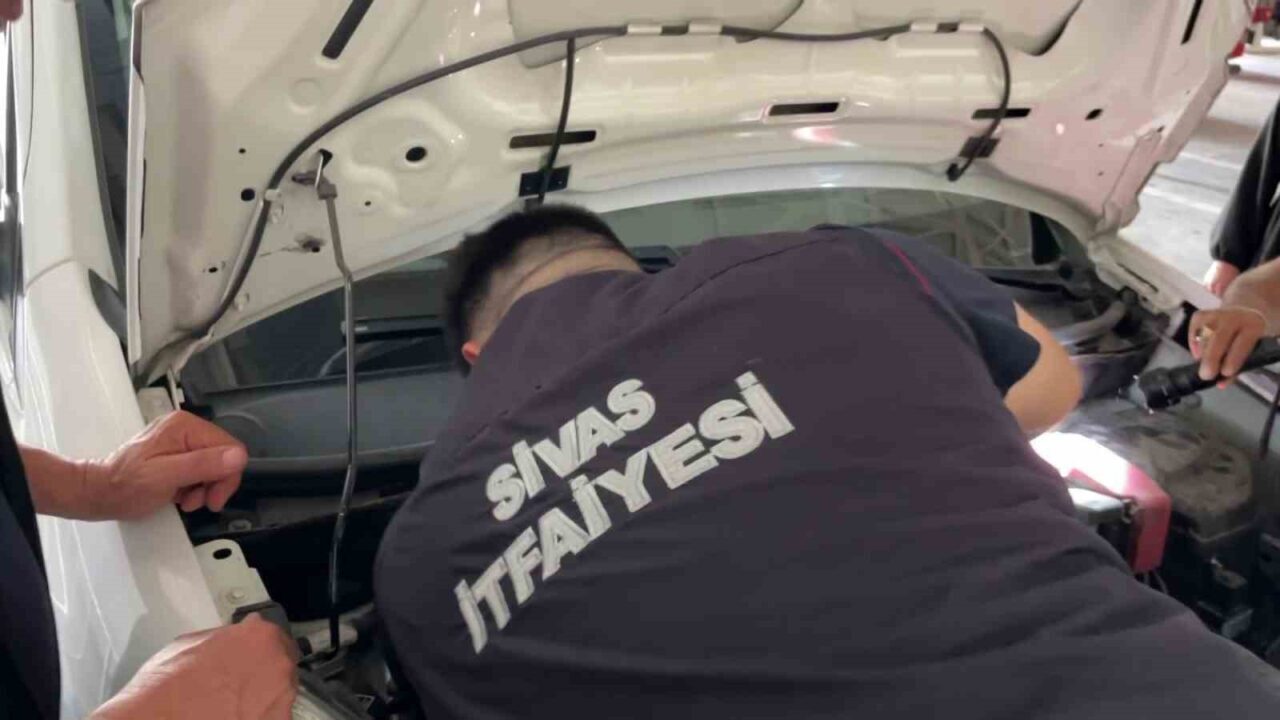 Sivas’ta aracından gelen sesi fark eden vatandaş, itfaiye istasyonuna gelerek ekiplerden yardım istedi. Motor kısmına sıkışan kedi, uzman ellerin müdahalesiyle çıkartıldı.