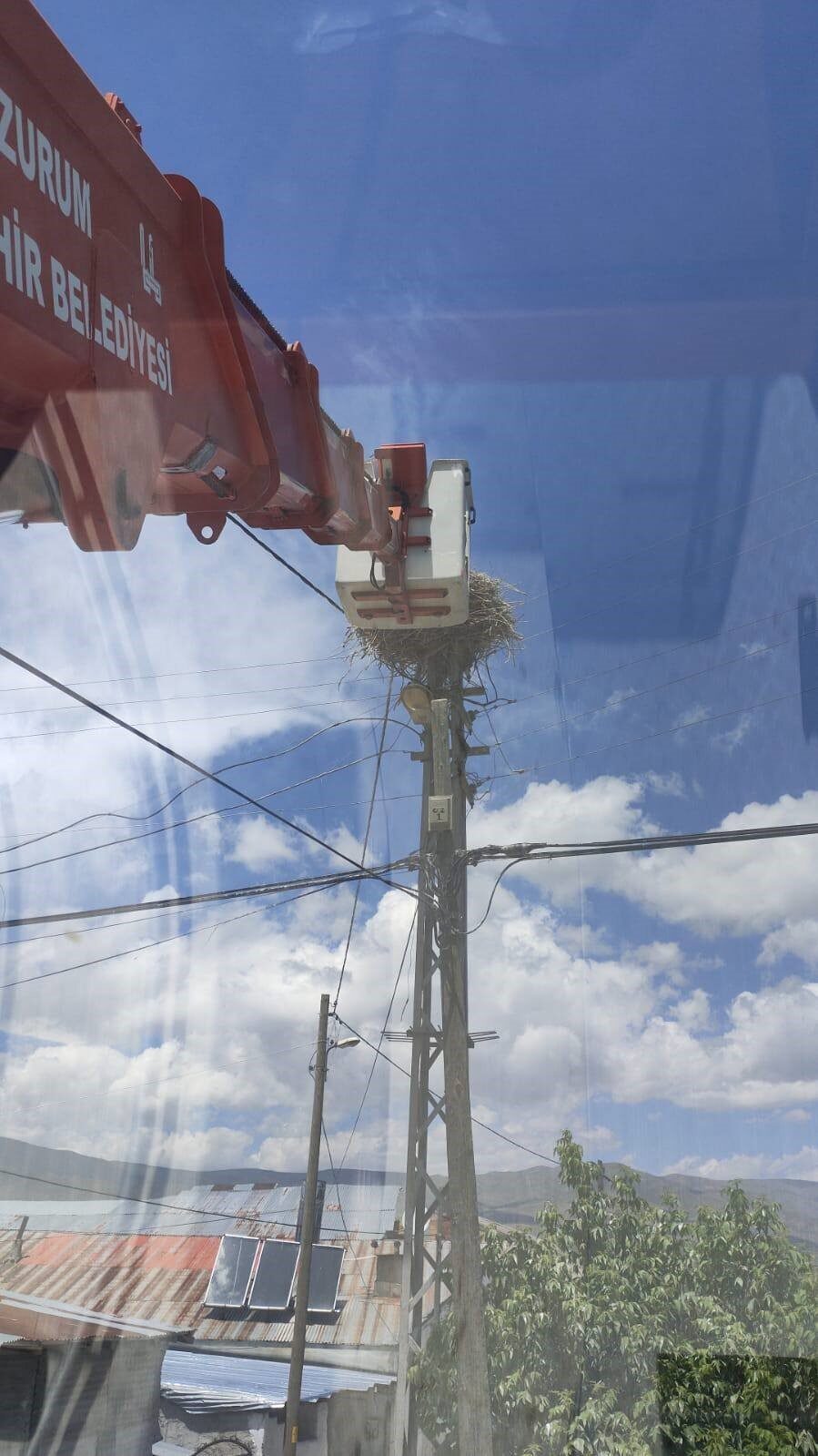 Erzurum Büyükşehir Belediyesi İtfaiye Daire Başkanlığı tarafından yapılan paylaşımda, “Yakutiye ilçesi Altıntepe Mahallesi’nde elektrik direğine yuva yapan leyleğin boynuna dolanan poşet, merkez itfaiye ekiplerimiz tarafından çıkarıldı” denildi.