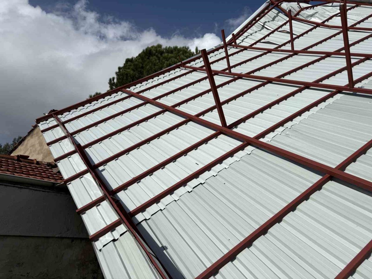 Öte yandan, rüzgarın şiddetine dayanamayarak uçan metal çatının yaklaşık bir ay önce yapıldığı öğrenildi.