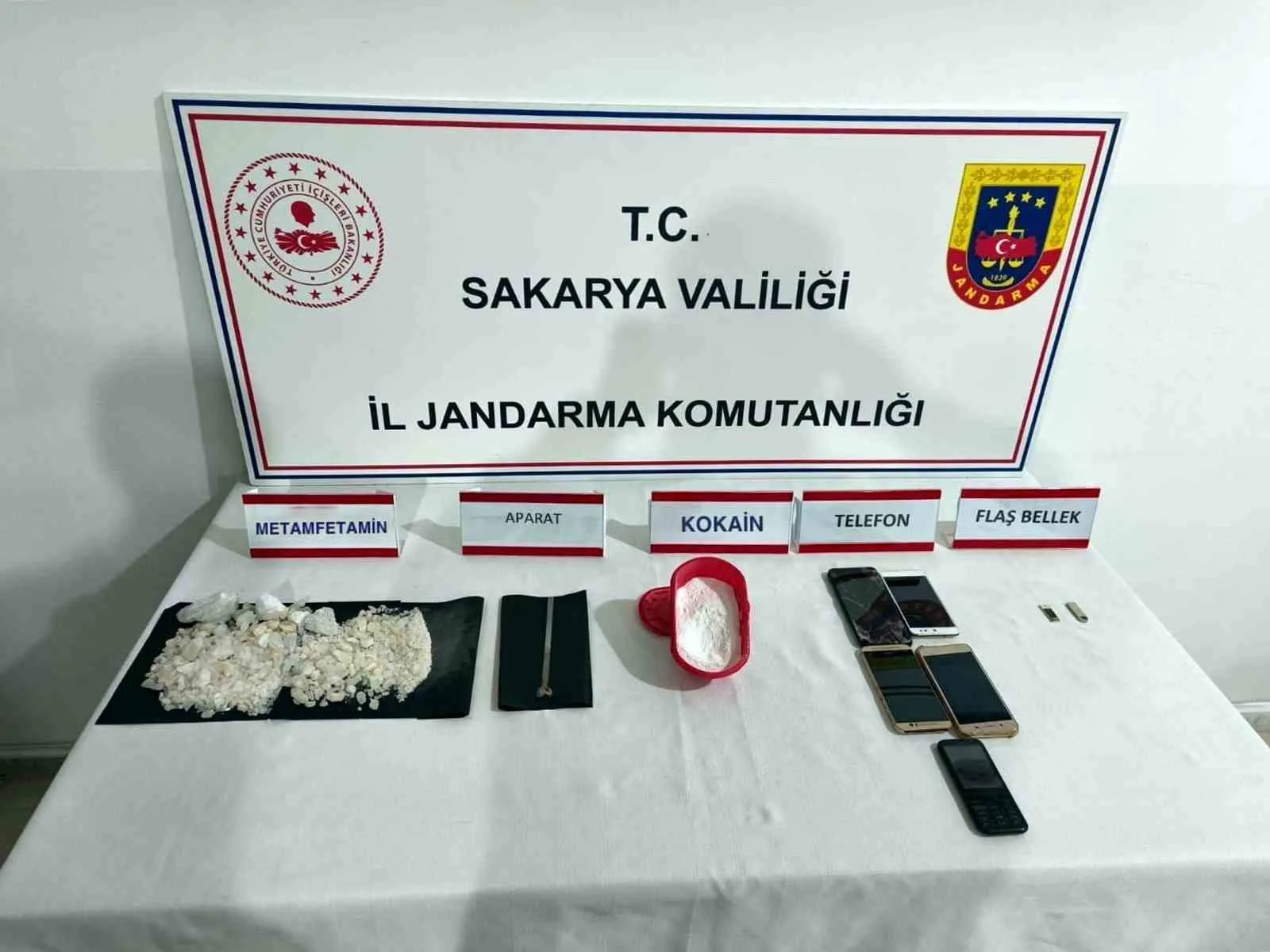 Sakarya İl Jandarma Komutanlığı ekipleri sorumluluk bölgesinde uyuşturucu madde imal ve ticaretine geçit vermiyor. Uyuşturucu ile mücadele çerçevesinde jandarma ekiplerince Sapanca ve Geyve ilçelerinde E.A. (39), A.S.A. (37) ve Suriye uyruklu E.N. isimli şahısların ikametgahlarına Sakarya Cumhuriyet Başsavcılığının koordinesi düzenlenen operasyonlarda; 754 gram metamfetamin, 218 gram bonzai, 209 gram uyuşturucu madde olduğu değerlendirilen toz ve 1 adette sentetik hap ele geçirildi. Jandarmadaki işlemlerinin ardından adli mercilere sevk edilen A.S.A. isimli şahıs adli kontrol şartı ile serbest kaldı. Diğer şahıslar E.A. ile E.N. ise tutuklanarak cezaevine gönderildi.