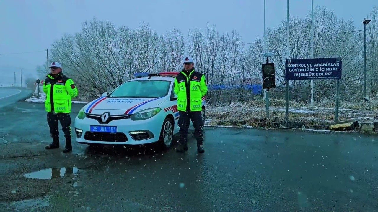 Erzurum’da jandarma trafik ekipleri kış lastiği denetimi yaptı.