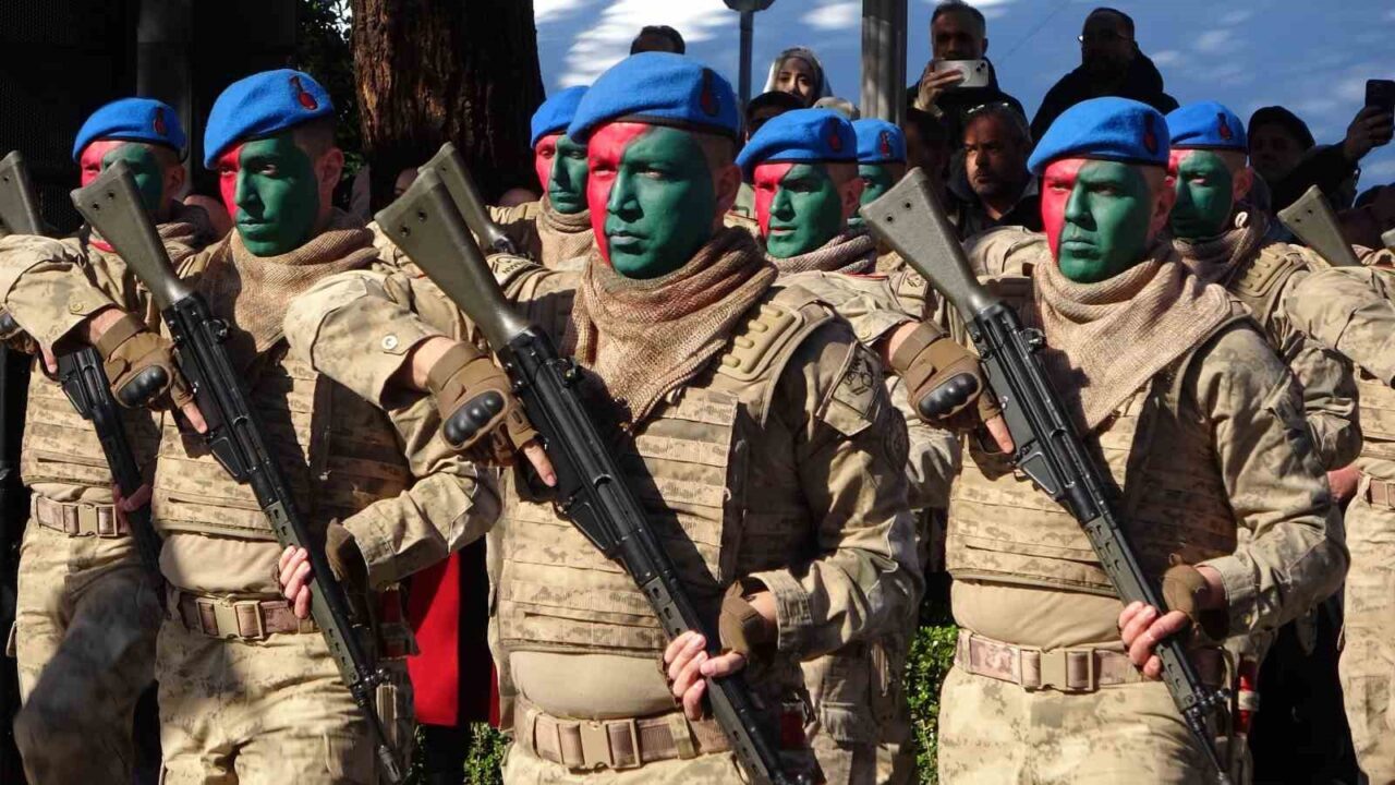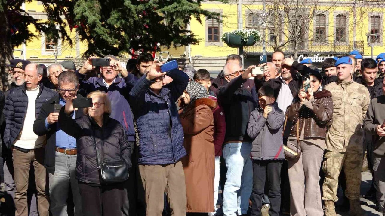 Mehteran ekibinin sergilediği kahramanlık türkülerinin ardından Trabzon Komando Taburu bir gösteri sundu. Mehmetçiğin tüfekli gösterisi adeta nefes keserken, alanı dolduran vatandaşlar o anları cep telefonlarına kaydetti.