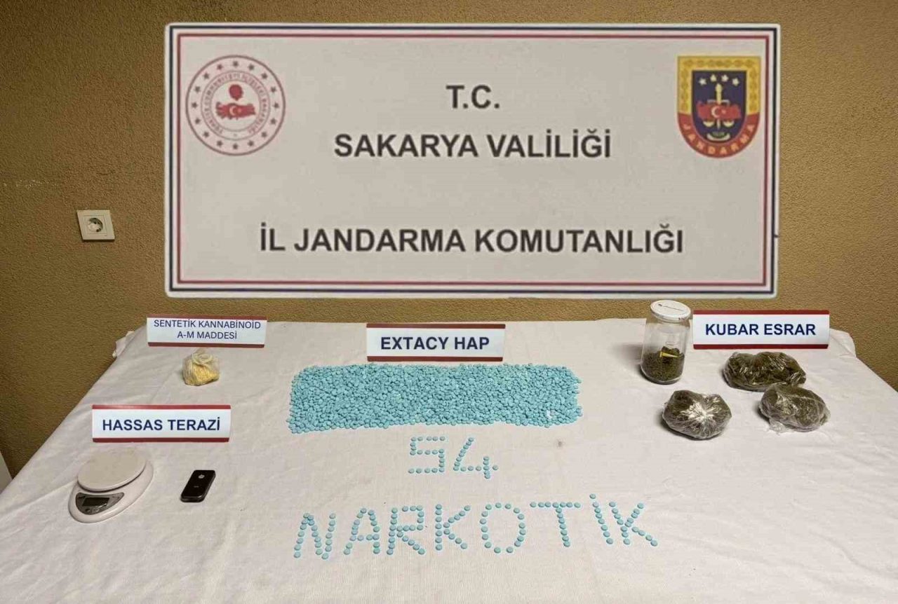 Serdivan ilçesinde kaçakçılık ve uyuşturucu madde imali ve ticareti yaptığı tespit edilen E.C.K (25) ve E.A. (30), İl Jandarma Komutanlığı ekiplerince düzenlenen operasyonla gözaltına aldı. Şahısların evlerinde yapılan aramalarda 2 bin 65 adet ecstasy hap, 445 gram esrar, 88 gram bonzai, 60 gram amfetamin maddesi ve 2 hassas terazi ele geçirildi. Adli işlemlerinin ardından şüphelilerden E.C.K.’nın tutuklanarak cezaevine gönderildiği bildirildi.