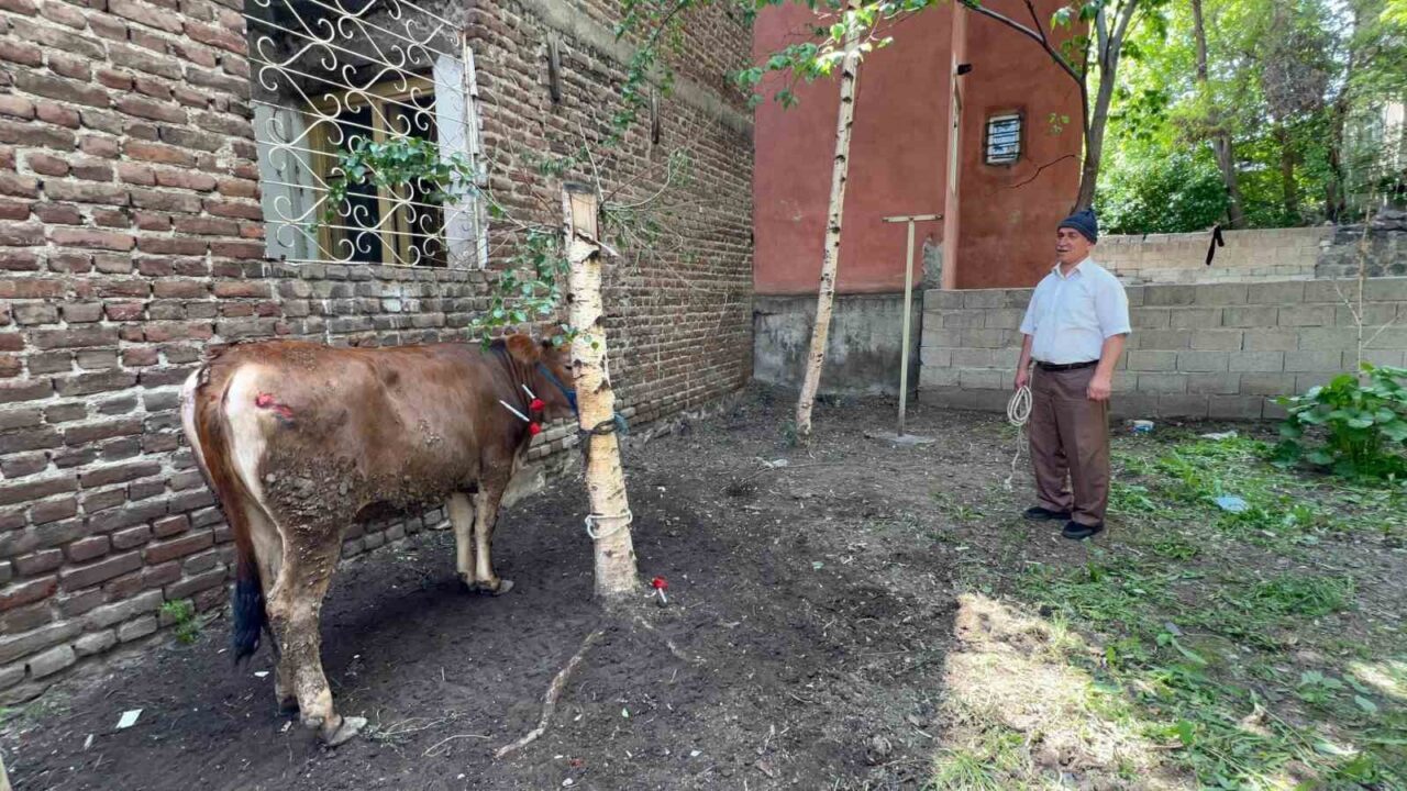 Erzurum’da kurban kesim alanına götürülürken kaçan düve sahibine zor anlar yaşattı.