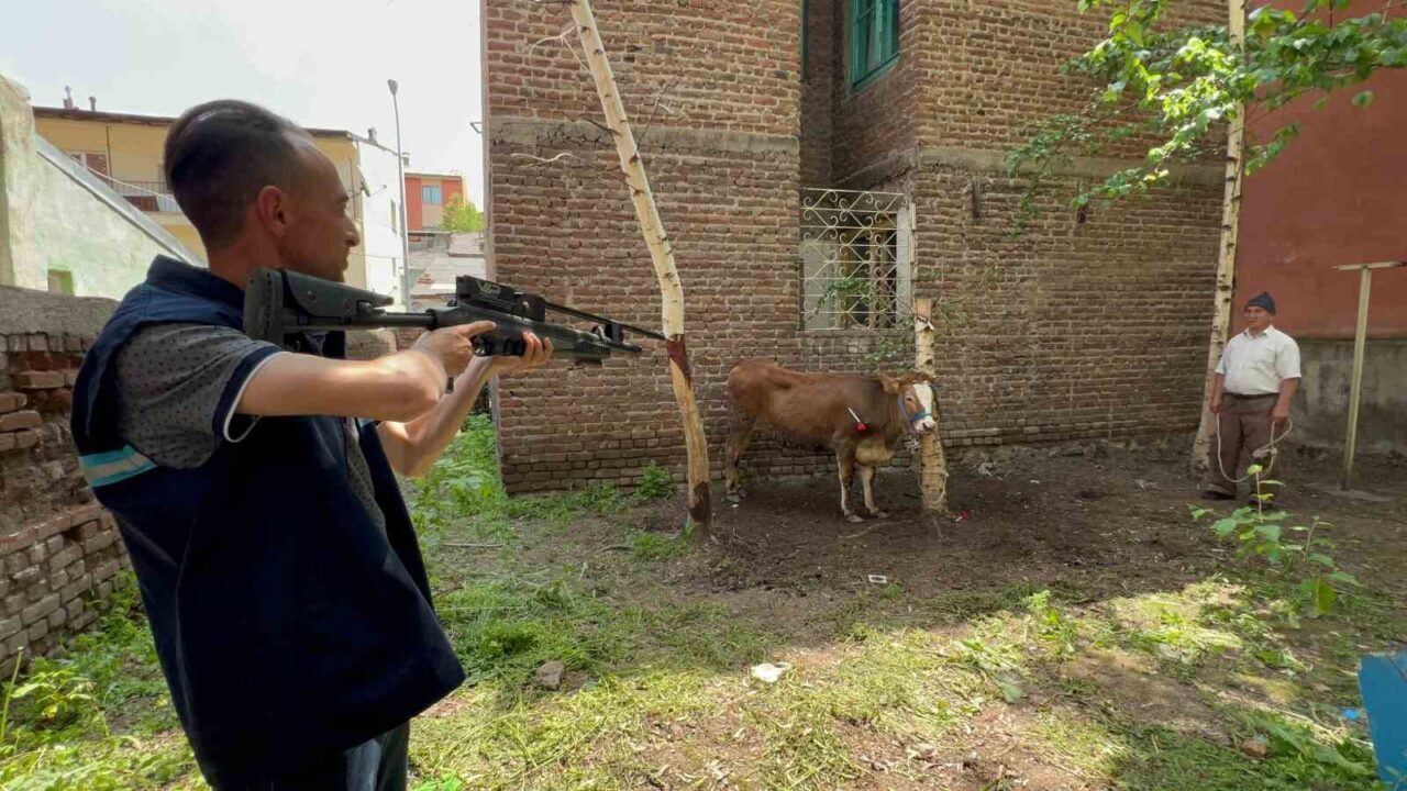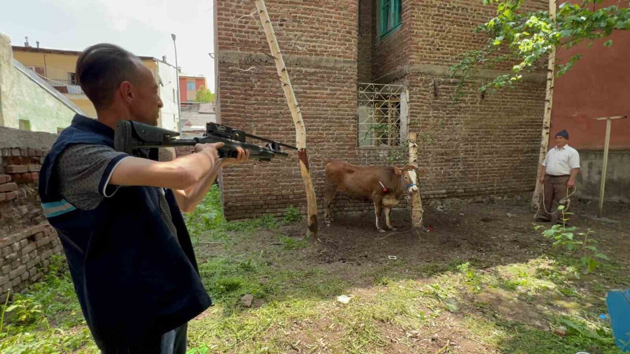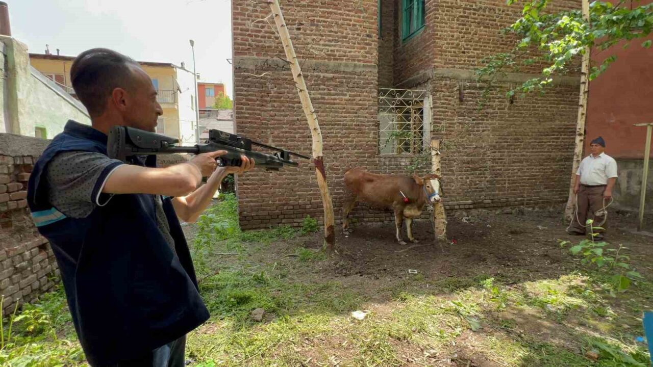 Yakutiye ilçesi Yoncalık semtinde sahibinin elinden kurulan düve Erzurum Büyükşehir Belediyesi Kurban Yakalama Timi tarafından yakalandı. Düve, kaçtığı bahçede uyuşturucu iğneyle sakinleştirilerek kesimhaneye götürüldü.