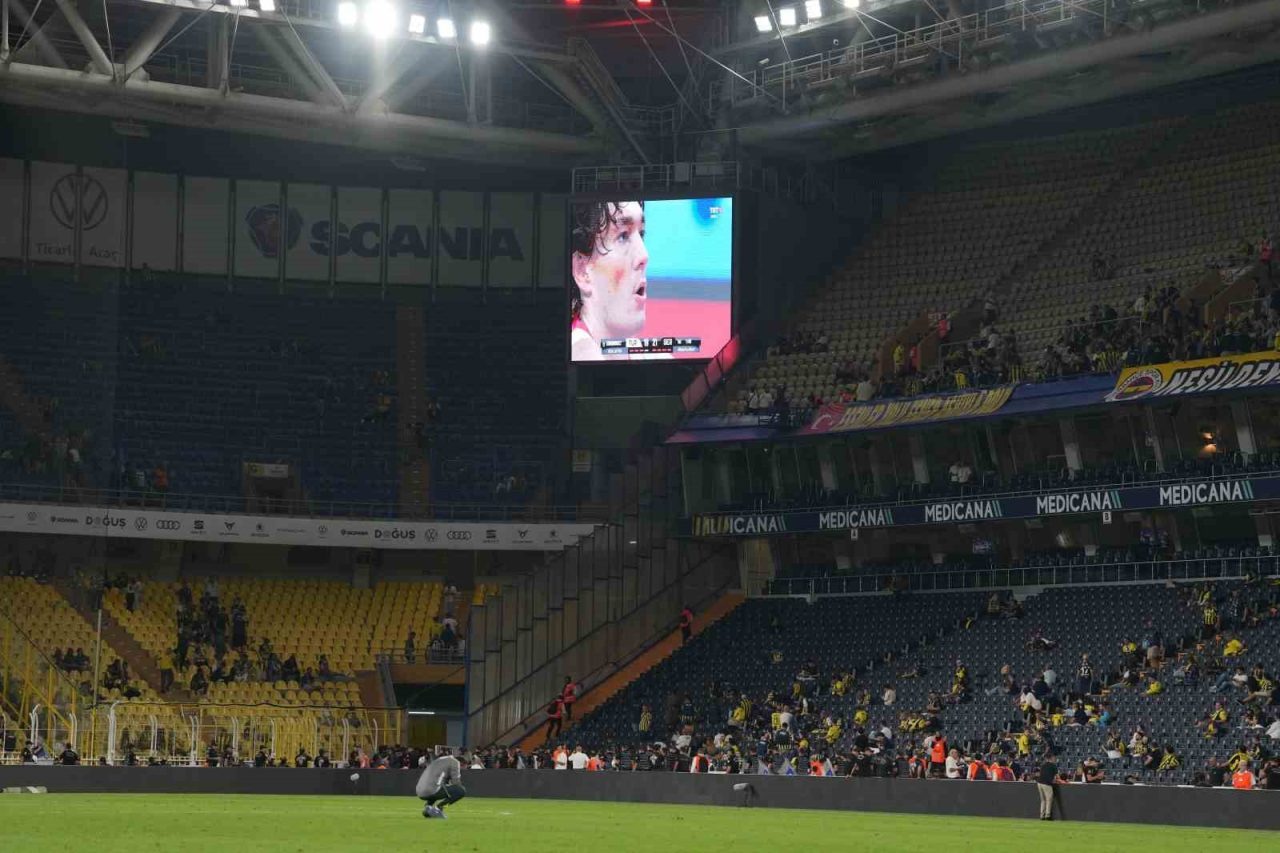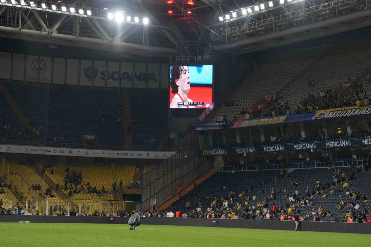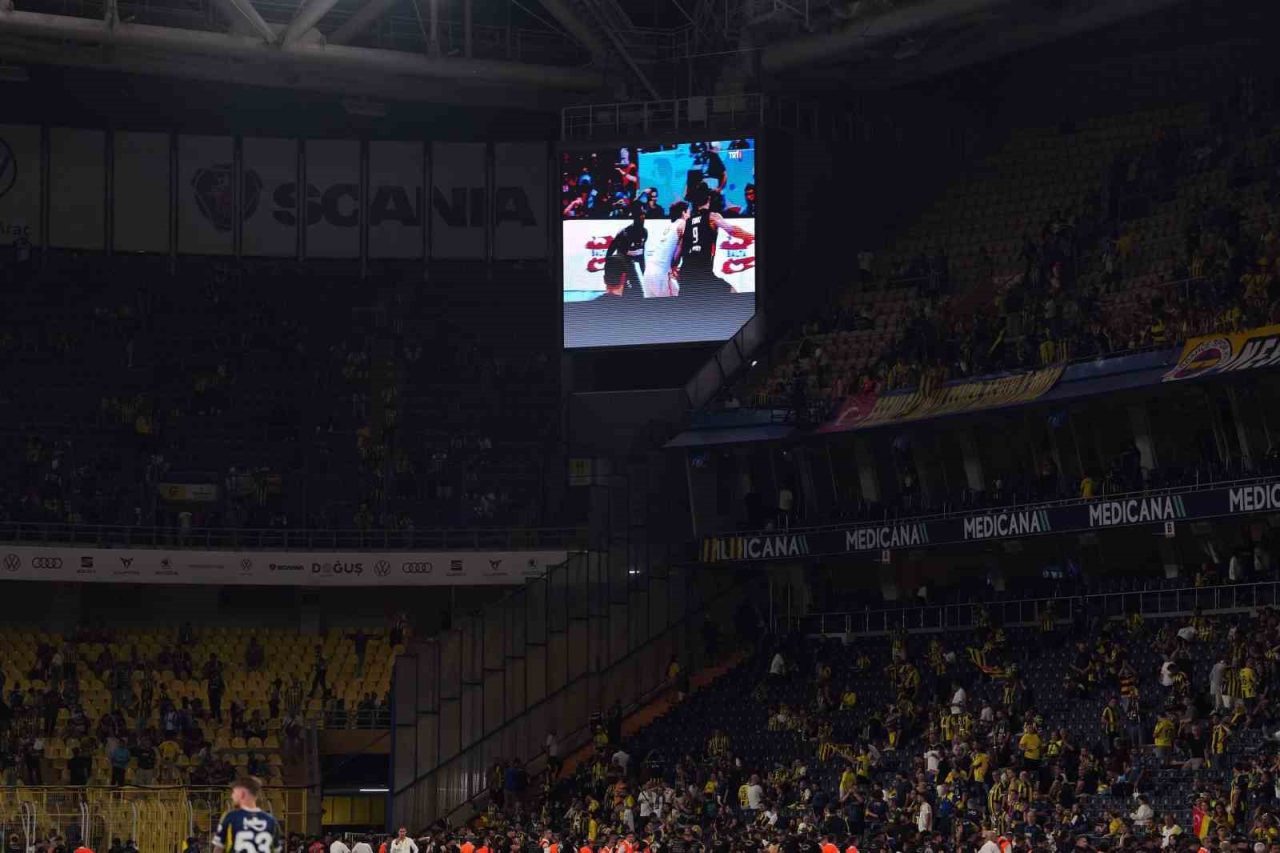 Trendyol Süper Lig’de Fenerbahçe ile Trabzonspor arasında oynanan müsabaka sonrasında stat hoparlöründen taraftarlara, A Milli Basketbol Takımı’nın final maçının izleneceği için stadyumdan ayrılmamaları anonsu yapıldı. Sarı-lacivertli taraftarların bir bölümü dev ekrana yansıtılan müsabakayı tribünlerden takip etti.
