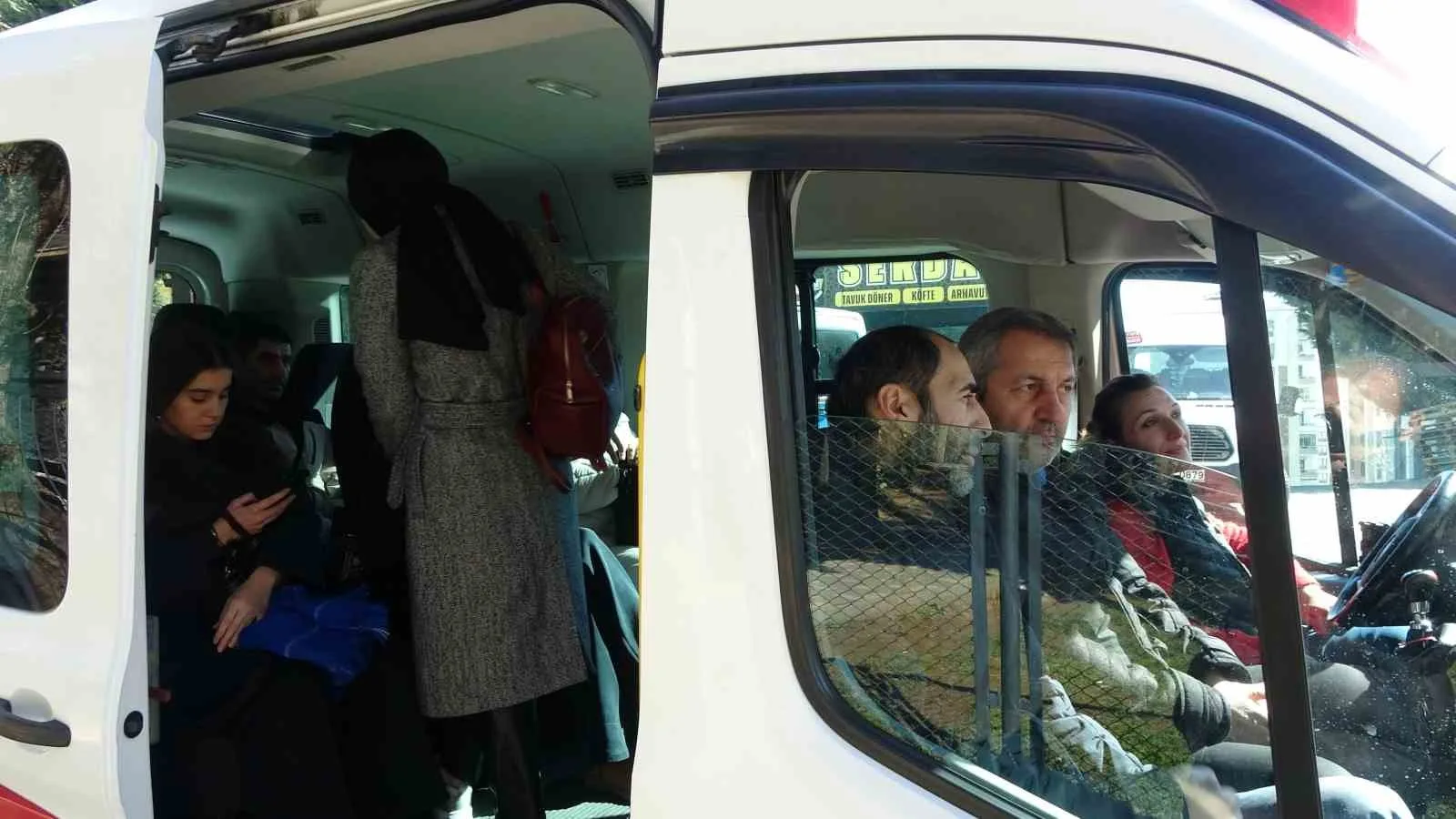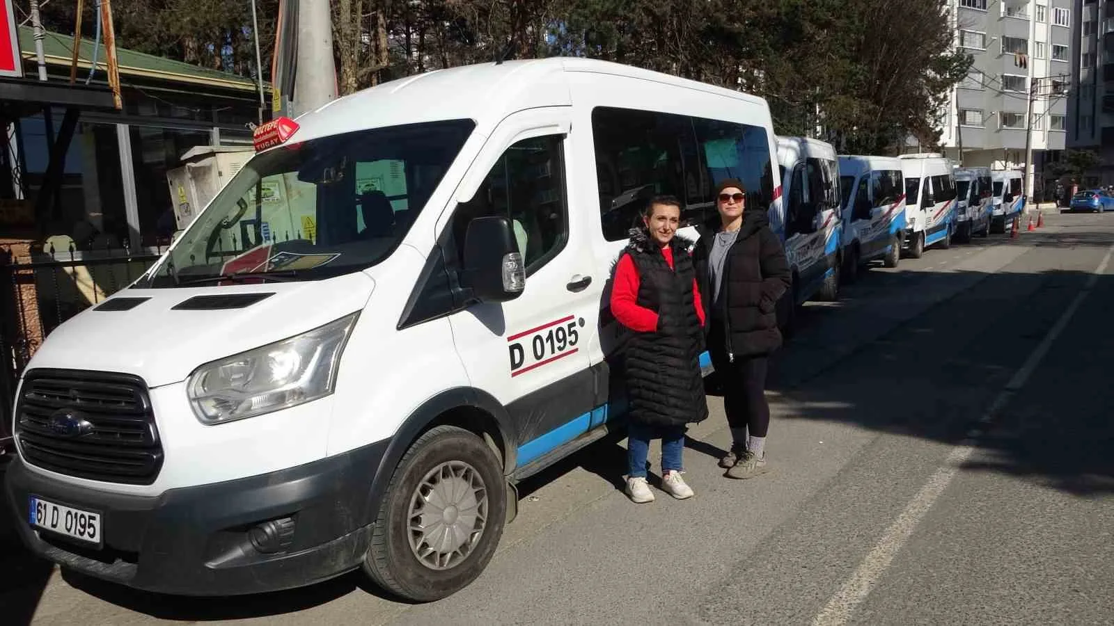 TRABZON’UN EN İŞLEK DURAKLARINDAN OLAN BOZTEPE DOLMUŞ DURAĞINDA İKİ BAYAN MİNİBÜS KULLANIYOR