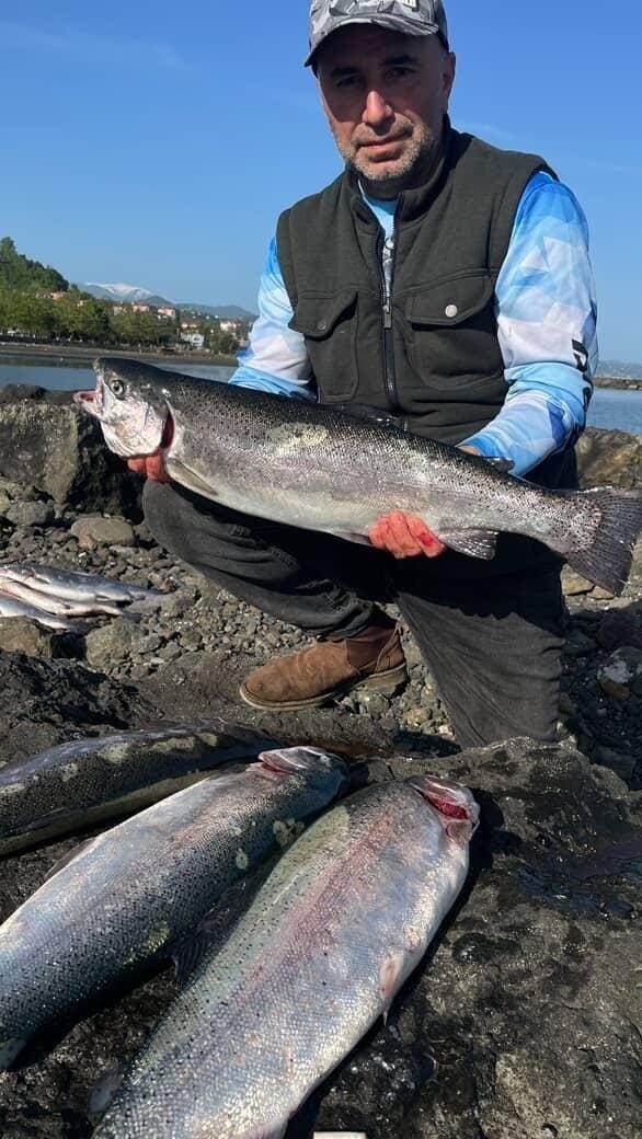 Trabzon’un Vakfıkebir ile Çarşıbaşı ilçeleri arasındaki sahil şeridi bugünlerde olta balıkçılarının uğrak yeri oldu. Bölgede açıkta bulunan somon kafeslerinde geçtiğimiz hafta somon hasadı başlarken, hasat sırasında kafesten veya tekneden denize kaçtığı tahmin edilen somonlar sahil şeridine akın etti. Bunu duyan olta balıkçıları sahile akın ederken, ağırlıkları 4-6 kg arasında değişen büyük somon balıkları balıkçıların yoğun ilgisini çekti.