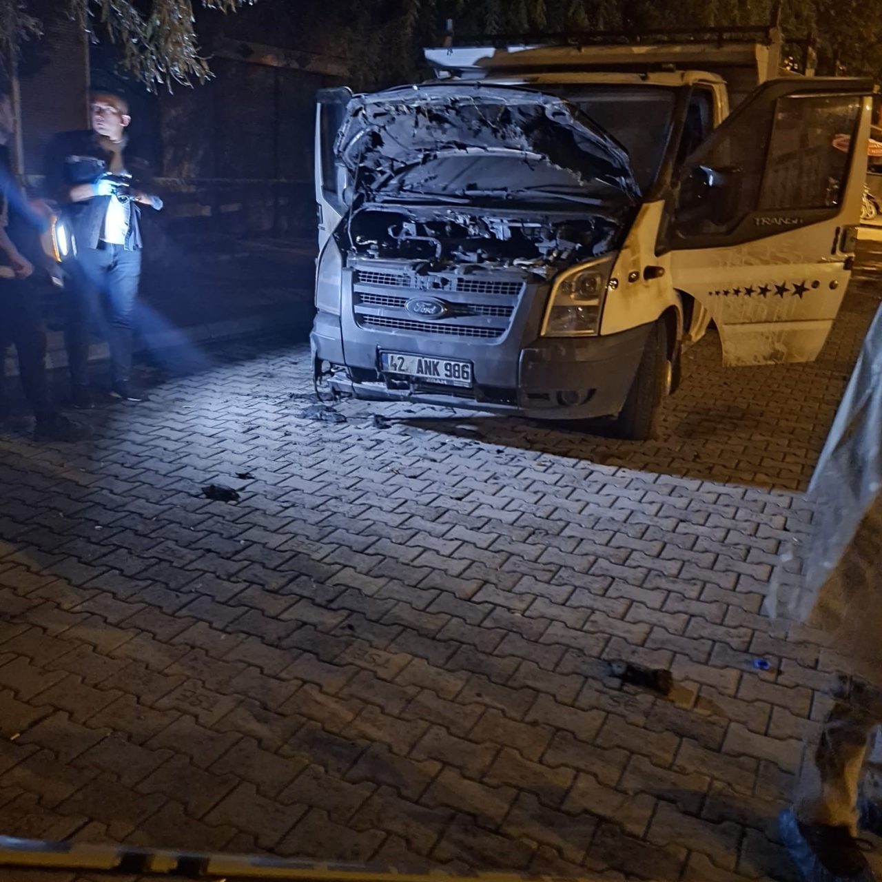 Kağızman’da park halindeki pikap, alev alev yandı.