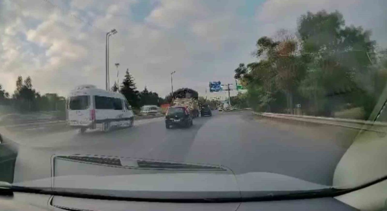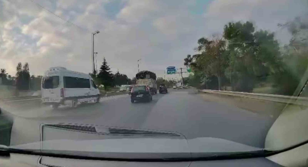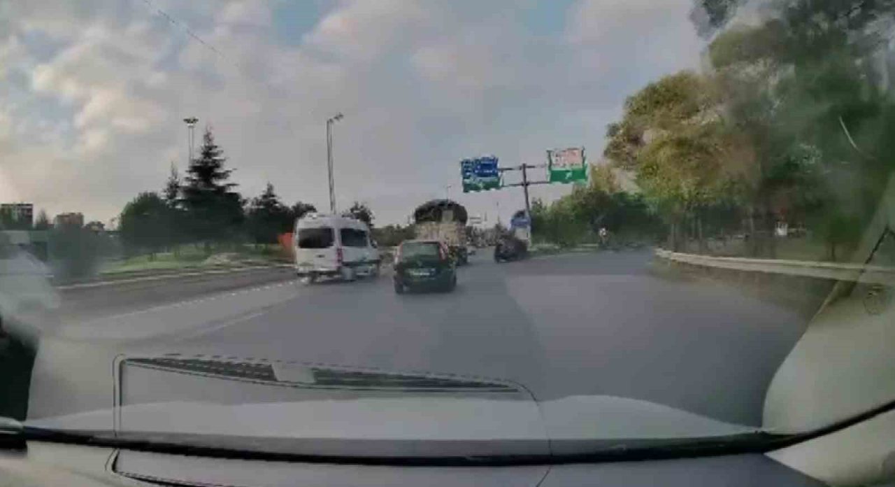 Kocaeli’nin Gebze ilçesinde ana yola bağlanmaya çalışan otomobil, kamyonetle çarpışmaktan kurtulmaya çalışırken, yol ayrımındaki demir bariyerlere girdi. O anlar araç içi kamerasına yansıdı.