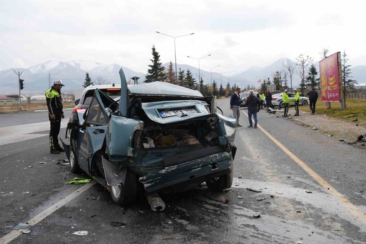 Erzurum’da freni boşalan kamyonun önündeki otomobile çarpması ile zincirleme kaza meydana geldi. 2 kişinin yaralandığı kazada Fiat Tofaş marka otomobil adeta hurdaya döndü.