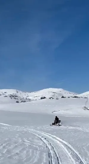 Trabzonlu bir grup doğa ve macera tutkunu son bir haftadır bölgede etkili olan sıcak havaları fırsat bilerek kar motorları ile Trabzon ve Gümüşhane illerinin kesişme noktasında bulunan 2 bin 300 rakımlı Kadırga Yaylası ve çevre obaları gezdiler.