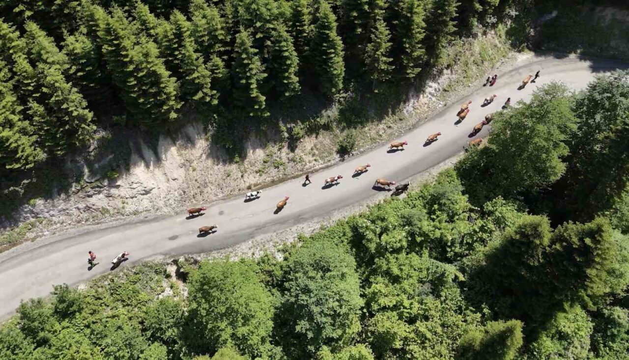 Karadeniz’in dik yamaçlarında, ormanla gökyüzünün birleştiği noktalara doğru yolculuk sürüyor. Şalpazarı’nın Sinlice Mahallesi’nde yaşayan Salih Usta, her yıl olduğu gibi bu yıl da ineklerini rengârenk süsleyerek yayla yolculuğuna çıktı. Geleneksel kıyafetleri, çanları ve püskülleriyle donatılan hayvanlar, adeta bir görsel şölen sundu.