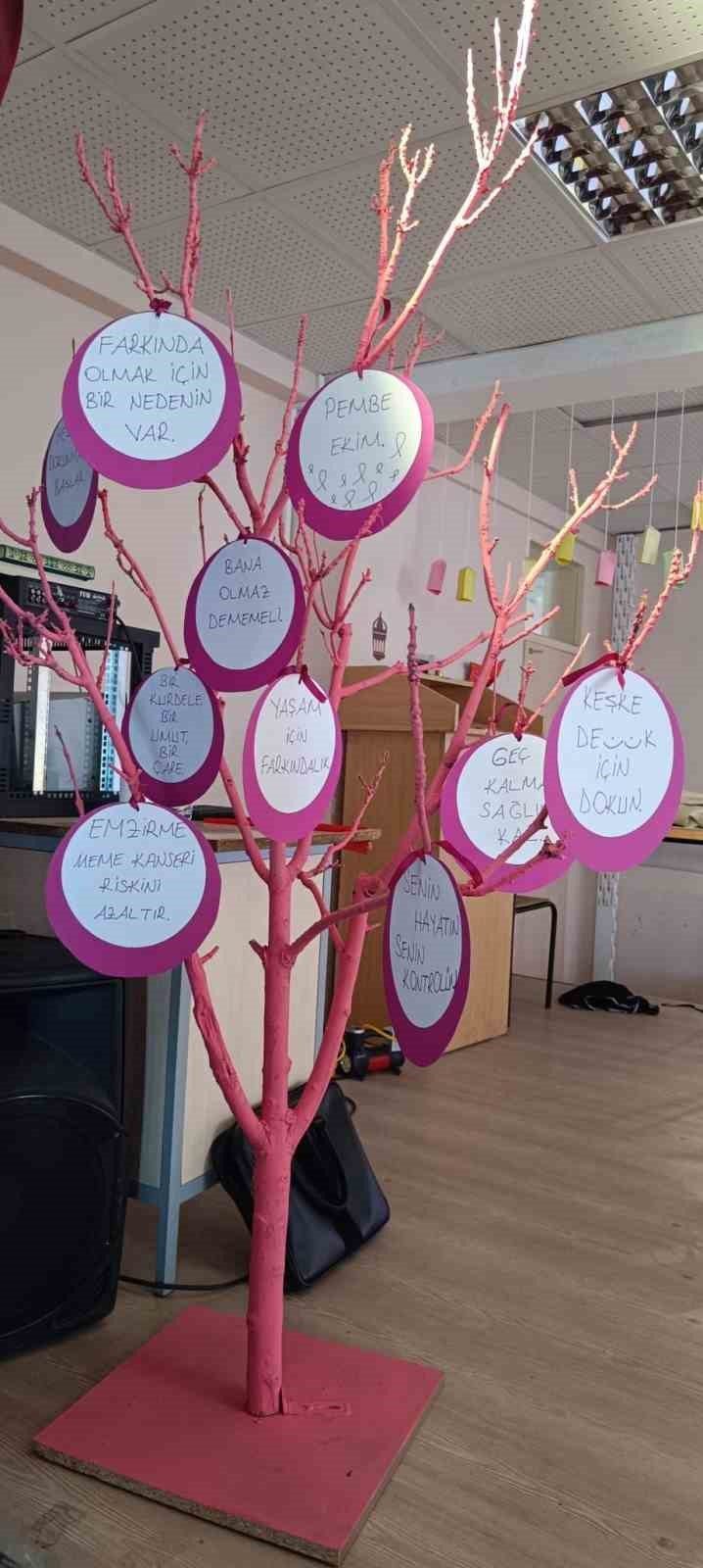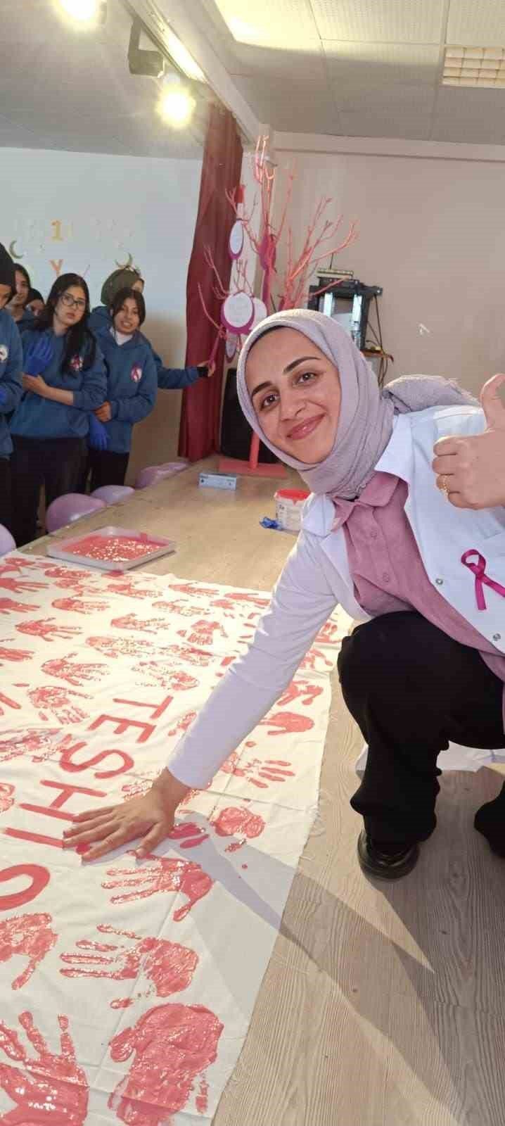 Ekim ayının Meme Kanseri Farkındalık Ayı olması dolayısıyla gerçekleştirilen seminerde, öğrenci ve öğretmenlere meme kanserinde erken teşhisin önemi anlatıldı. Hemşire Sevim Güzel, meme kanserinin kadınlar arasında en sık görülen kanser türlerinden biri olduğunu belirterek, “Erken teşhis, tedavi başarısını önemli ölçüde artırmaktadır. Bu nedenle düzenli muayene ve kontroller büyük önem taşır.” ifadelerini kullandı.