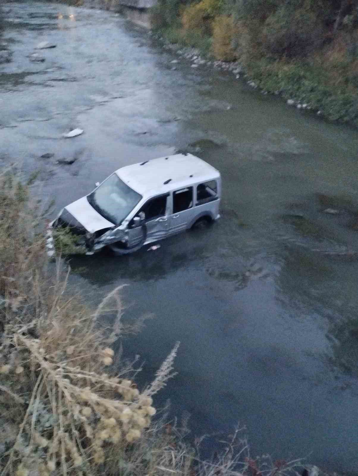 Kars’ta sürücüsünün direksiyon hakimiyetini kaybettiği hafif ticari araç yoldan çıkarak Kars Çayı’na düştü. Kazada sürücü yaralandı.