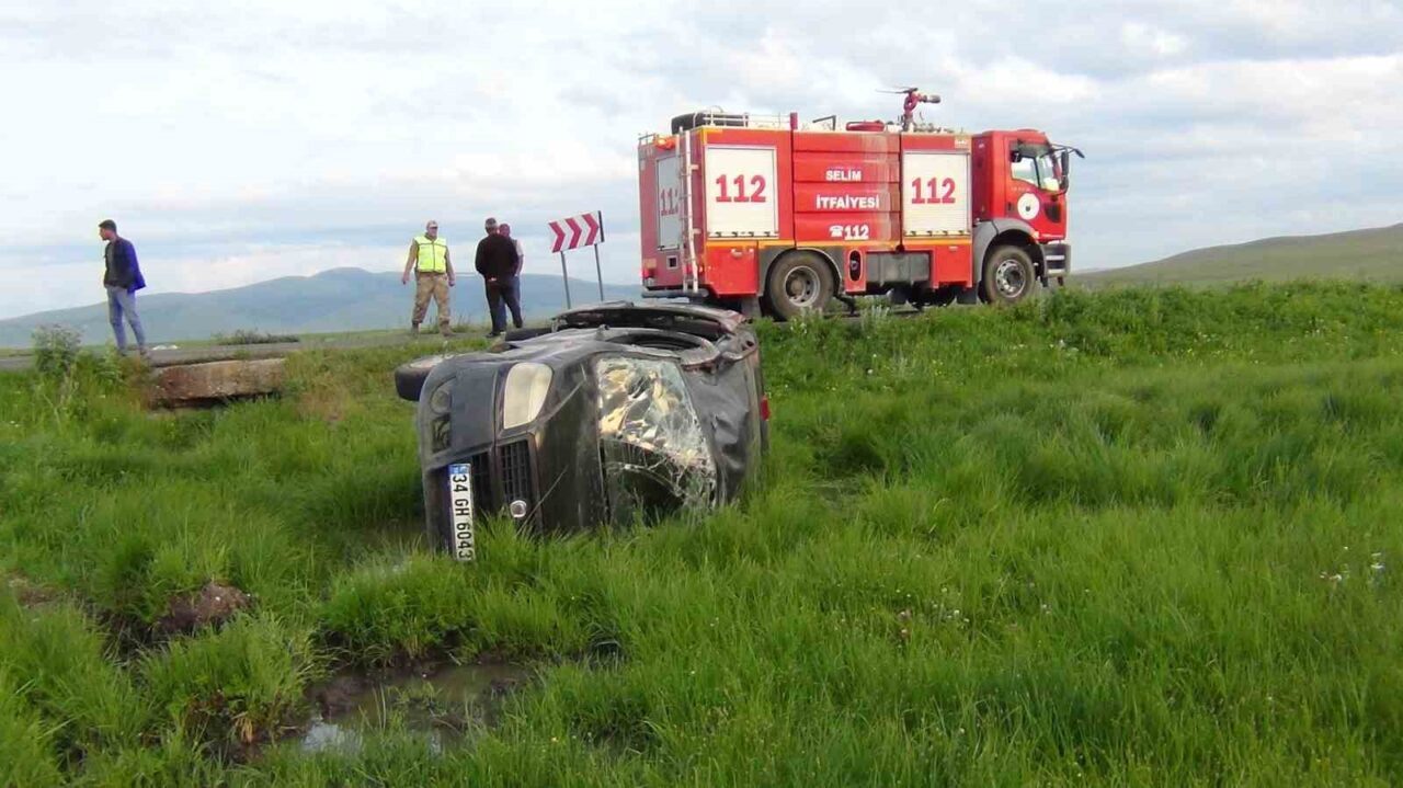 Kaza, Selim ilçesi Katranlı köyü yolunda meydana geldi. Bayram ziyaretinden dönen Selman Ö. idaresindeki 34 GH 6043 plakalı hafif ticari araç, sürücüsünün direksiyon hakimiyeti kaybetmesiyle yoldan çıkarak şarampole uçtu. Kazada sürücü Selman Ö., araçta bulunan İbrahim Ö., Sait Ö., Nurettin Ö. ve Güzel I. yaralandı. İhbar üzerine olay yerine sağlık, itfaiye, jandarma ile Afet ve Acil Durum İl Müdürlüğü (AFAD) ekipleri sevk edildi. Ambulanslarla Harakani Devlet Hastanesi’ne kaldırılan yaralıların durumlarının iyi olduğu öğrenildi.