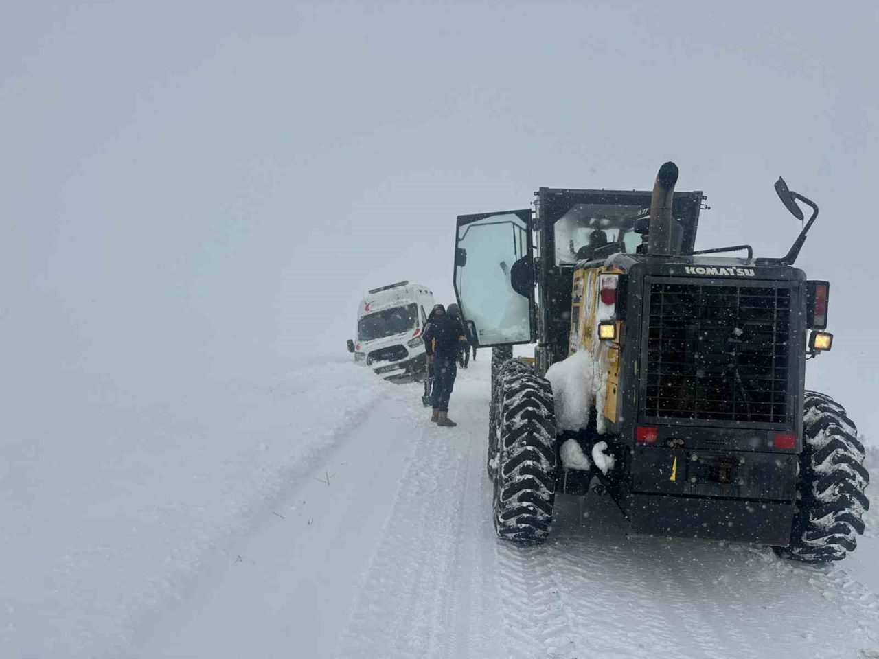 Kısa sürede olay yerine ulaşan karla mücadele ekipleri, iş makineleri eşliğinde ambulansların önünü açmak için çalışma başlattı. Tipi nedeniyle kapanan yollar tek tek temizlenerek ambulansların geçişi sağlandı. Ekiplerin yaklaşık 2 saat süren yoğun çalışması sonucu kurtarılan sağlık araçları, hastalara zamanında müdahale edebilmek için ilerleyişini sürdürdü.
