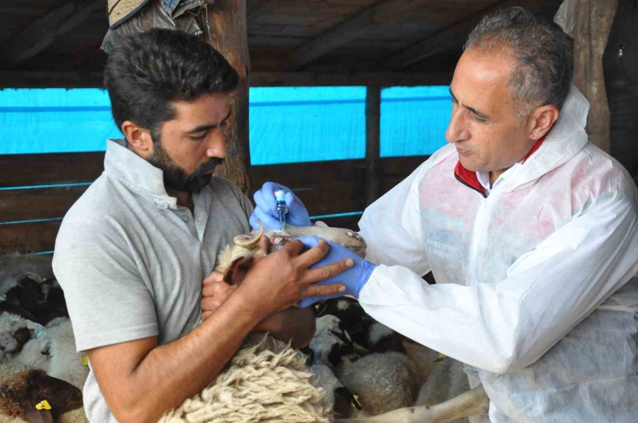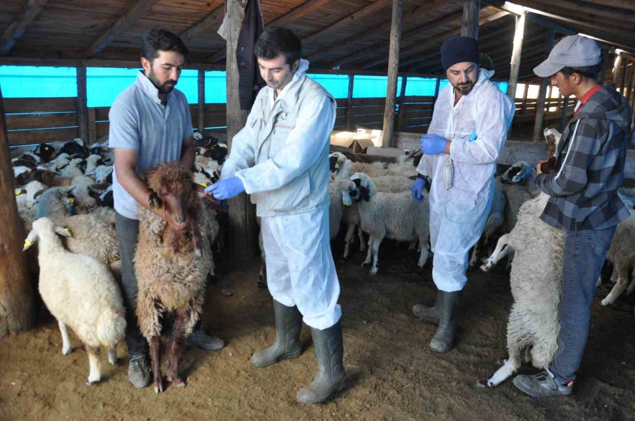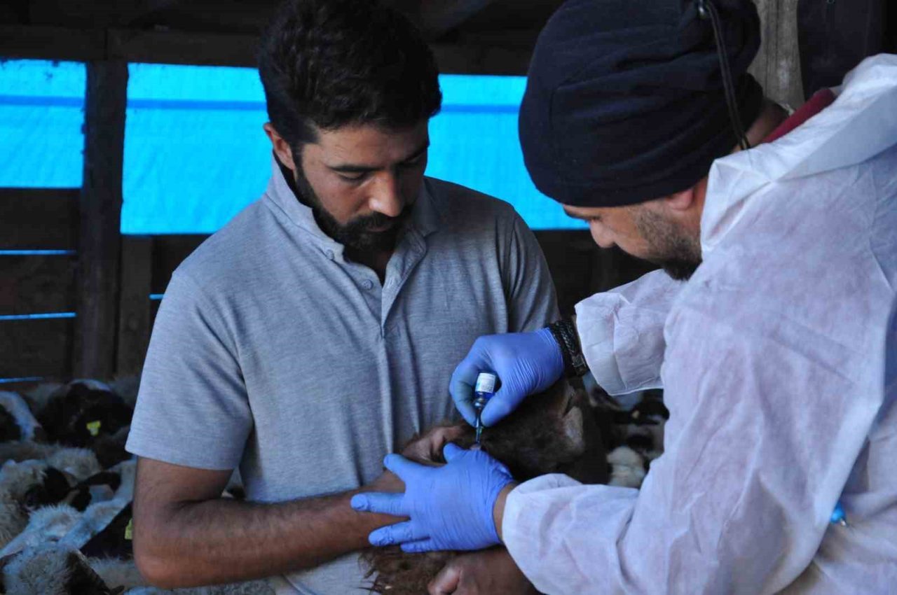 Kars’ta küçükbaş hayvanlar küpe takılarak kayıt altına alınırken, küçükbaş hayvanların hastalıklara karşı aşıları da vuruluyor.