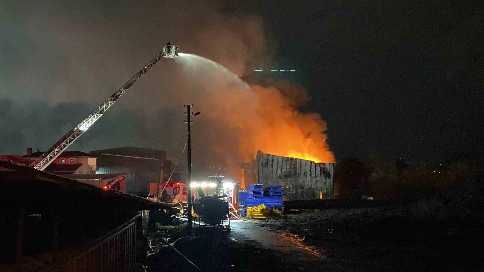 KOCAELİ’NİN KARTEPE İLÇESİNDE GERİ DÖNÜŞÜM FABRİKASINDA YANGIN ÇIKTI. GECENİN KARANLIĞI ALEVLERLE AYDINLANIRKEN, PATLAMA SESLERİ ÇEVREDEN DUYULDU. BÖLGEYE SEVK EDİLEN ÇOK SAYIDA EKİP, YANGINI 2 SAATE SÖNDÜRÜRKEN, SOĞUTMA ÇALIŞMASI DEVAM EDİYOR.