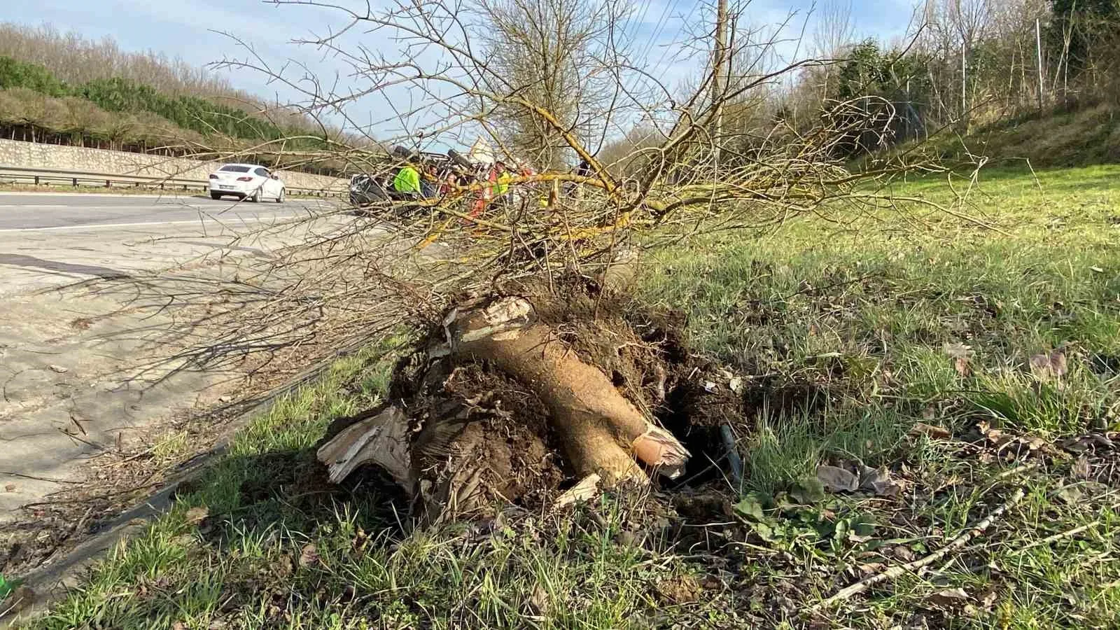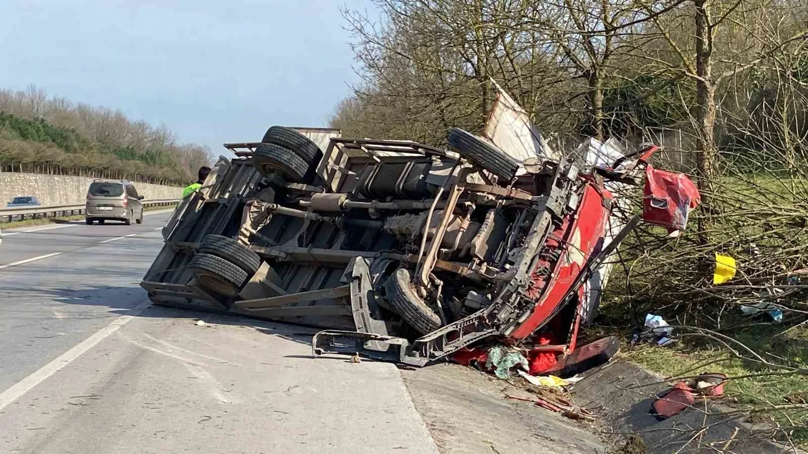 KOCAELİ’NİN KARTEPE İLÇESİNDE ÇUVAL YÜKLÜ KAMYONET SÜRÜCÜSÜNÜN DİREKSİYON HAKİMİYETİNİ KAYBETMESİYLE AĞAÇLARI BİÇEREK YOL KENARINA UÇTU. KAMYONETTE SIKIŞAN İKİ KİŞİ, İTFAİYE EKİPLERİ TARAFINDAN SAĞ OLARAK KURTARILDI.