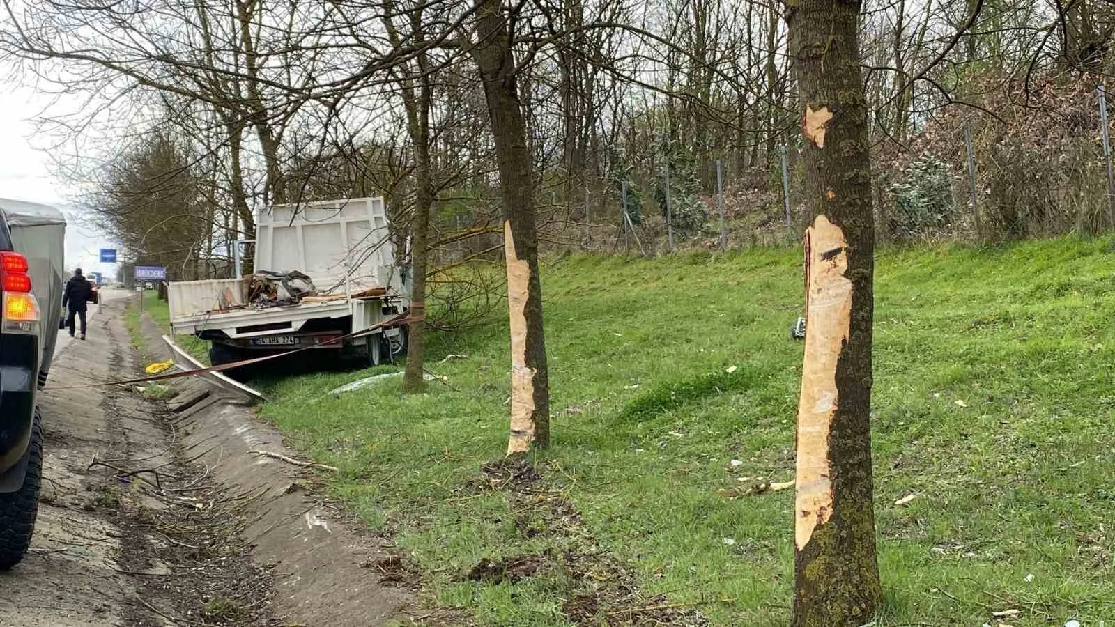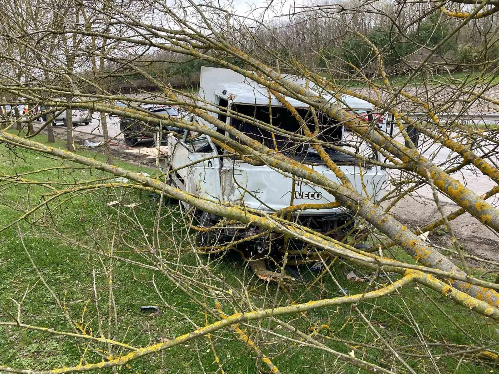 Kocaeli’nin Kartepe ilçesinde seyir halindeki panelvan sürücüsü direksiyon hakimiyetini kaybederek kamyonete çarptı. Duramayan kamyonet toprak yola girerek bir ağacı devirdi. Yaralanan 2 sürücü hastaneye kaldırıldı.