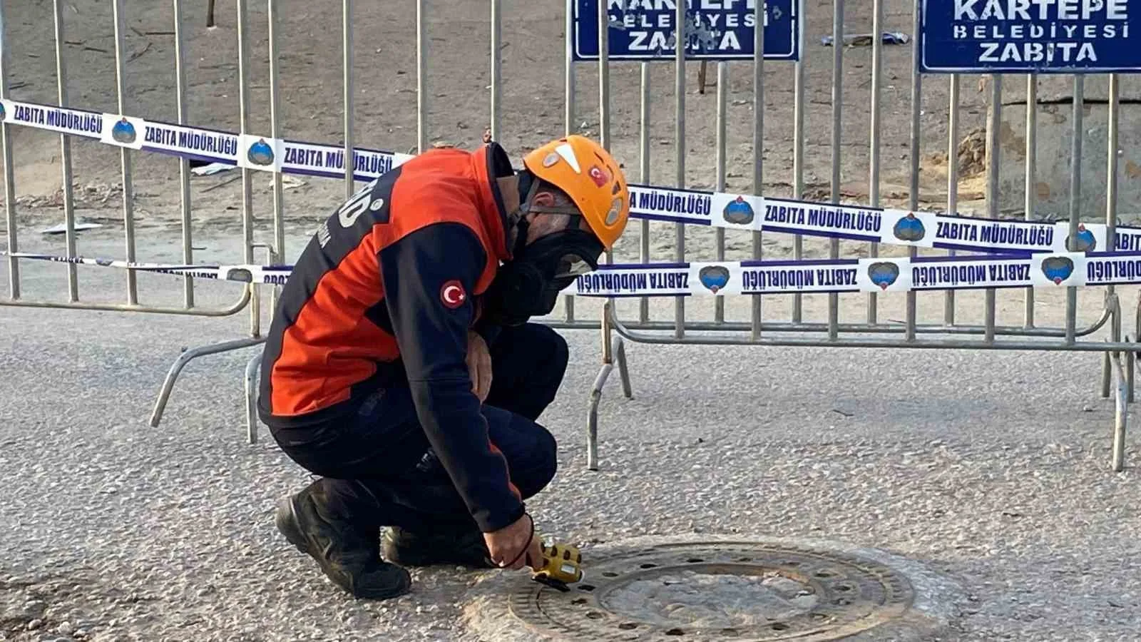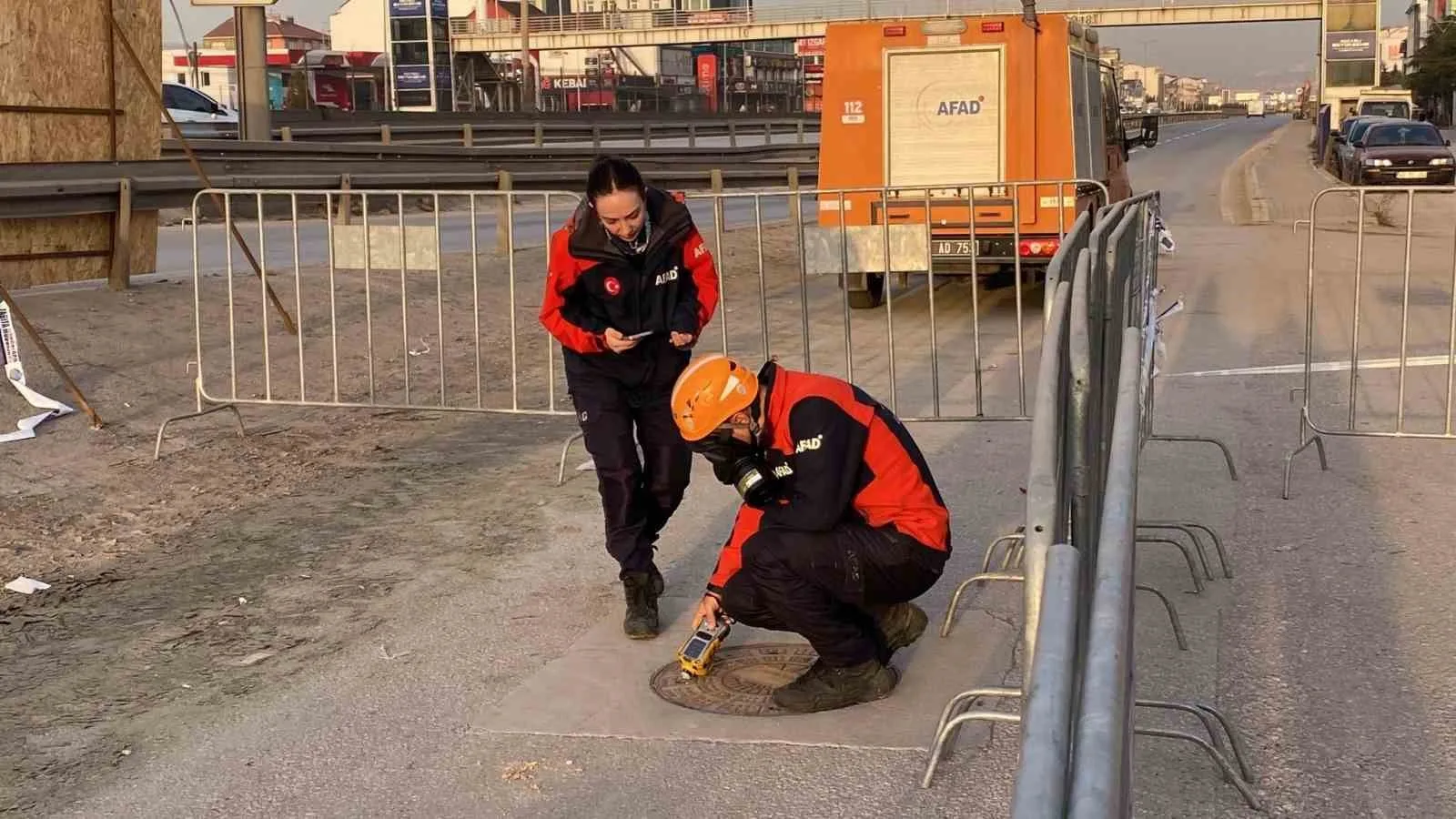 Alevlerin gözle görülmez hale gelmesine rağmen gaz çıkışı sürerken, AFAD ekipleri bölgedeki gaz seviyesini ölçtü.