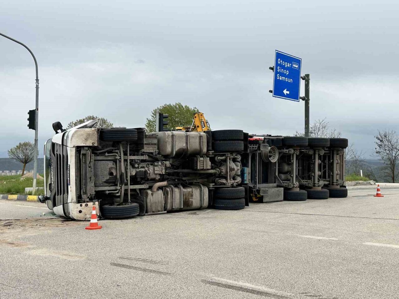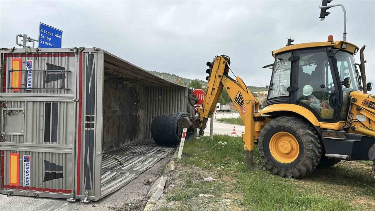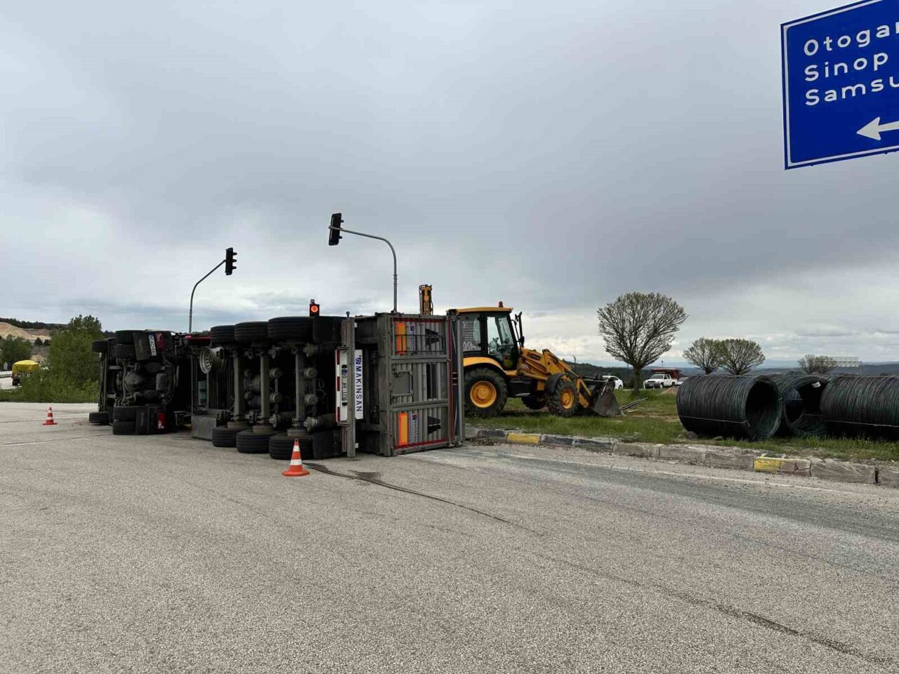 Kastamonu’da kavşakta devrilen demir yüklü tırın sürücüsü yaralandı.