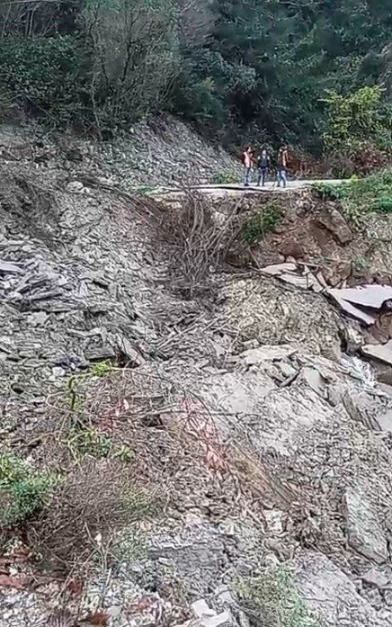 Akan toprak, yol Karadeniz’e kadar aktı. Karayolları ekipleri yolda çalışma başlattı.